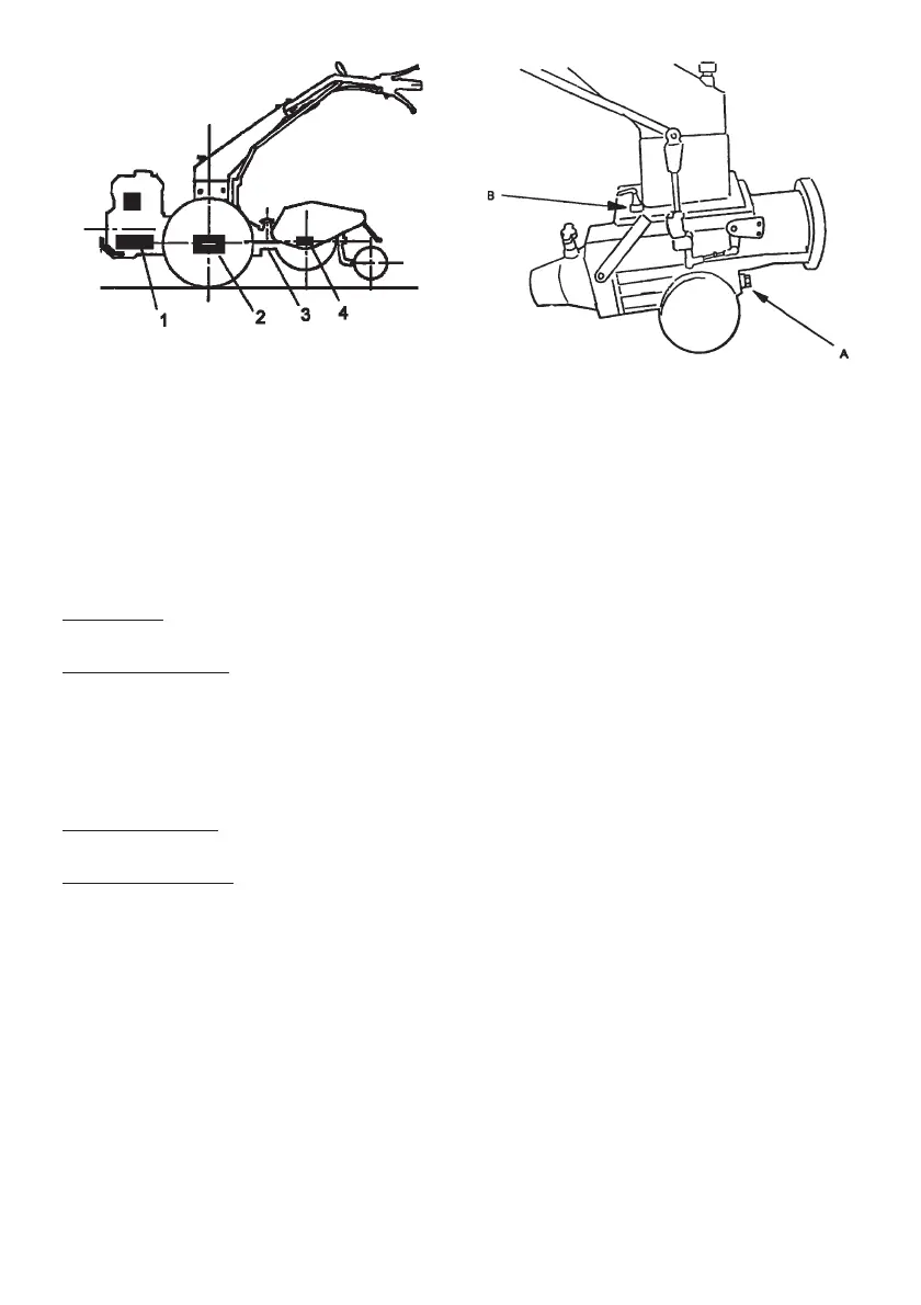 Check level by using dipstick on cap B.