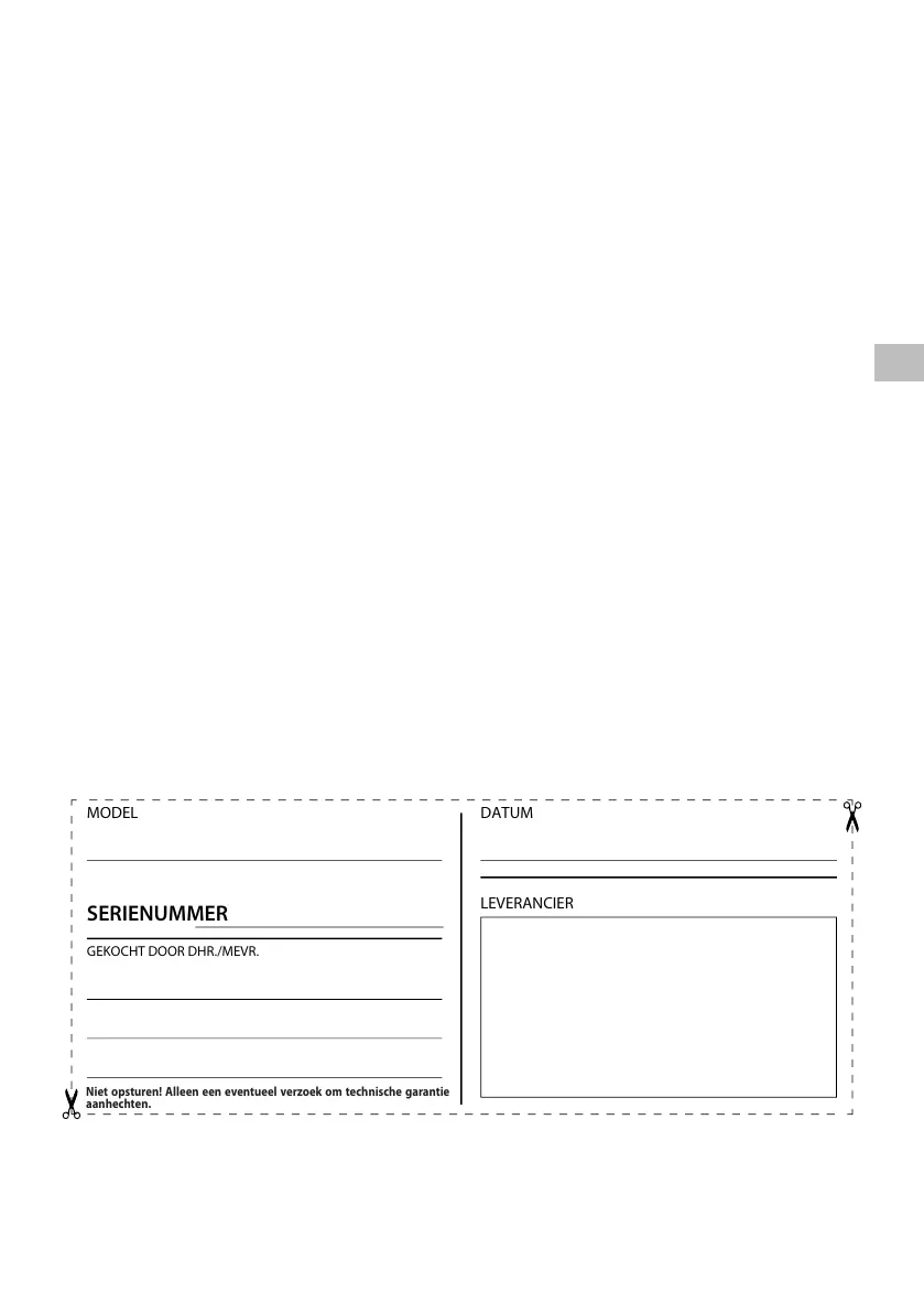 Niet opsturen! Alleen een eventueel verzoek om technische garantie