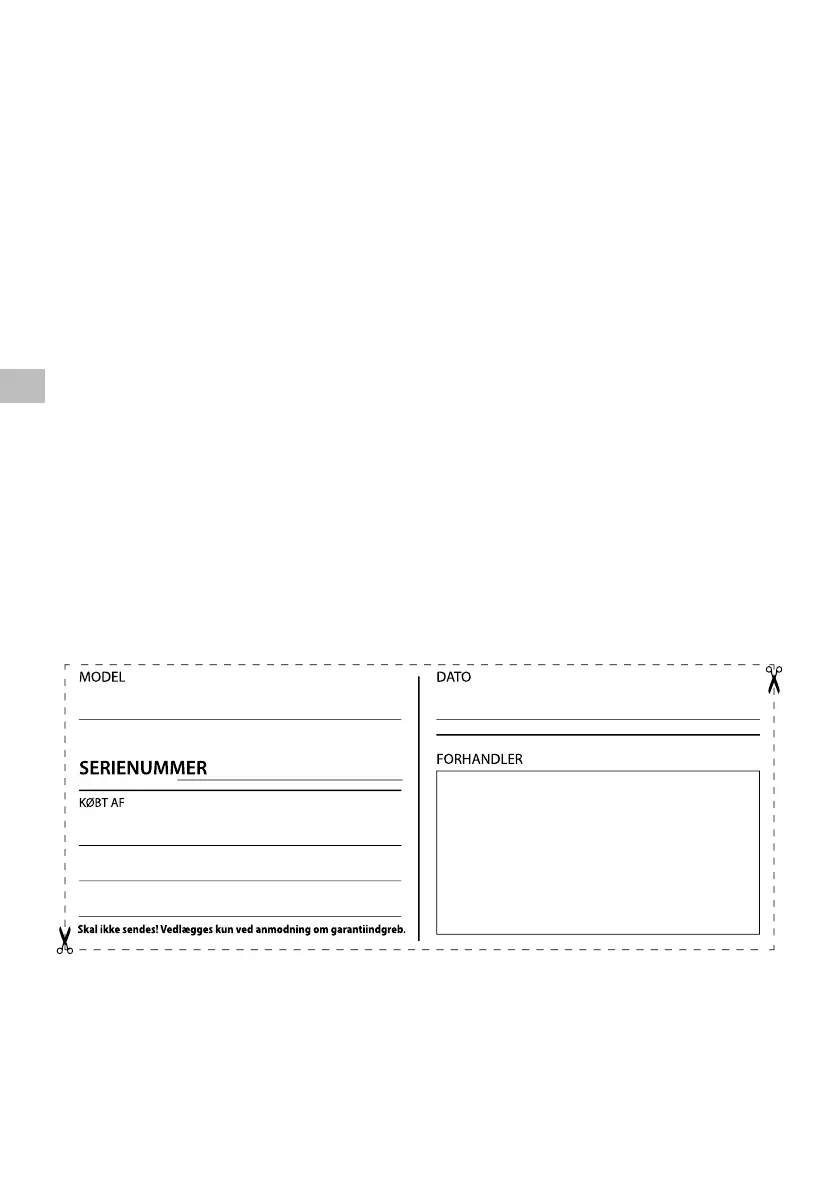 10. Garantien dækker ikke eventuelle skader, direkte