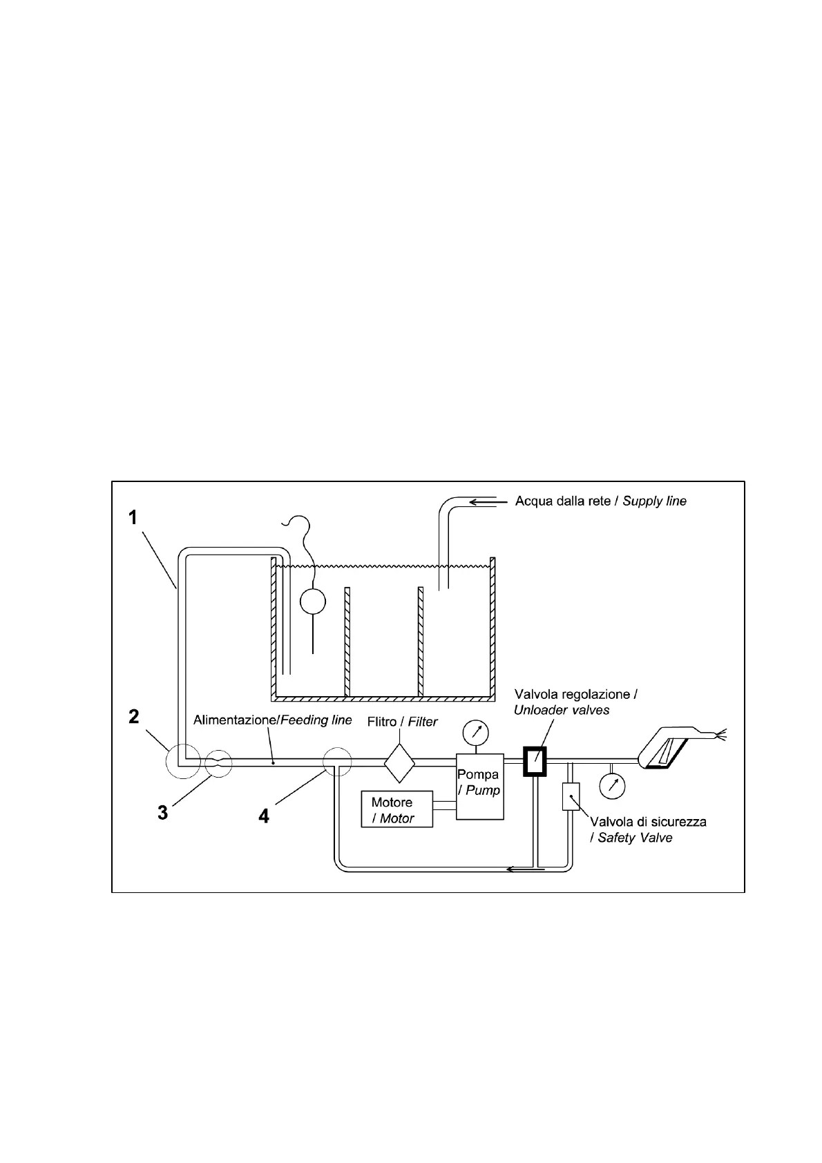 4) Never connect the by-pass line with return on the inlet line.