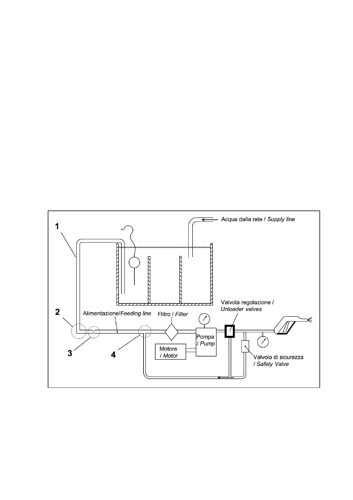 4) Non collegare mai la linea di by-pass con ritorno in alimentazione.