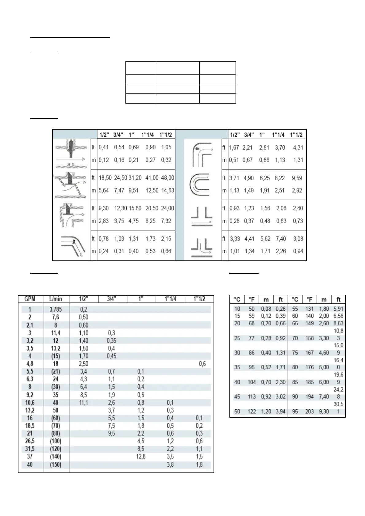 Tabella 3 Perdite per 10m (10ft) di tubo d’acciaio per varie Tabella 4 Perdita di aspirazione