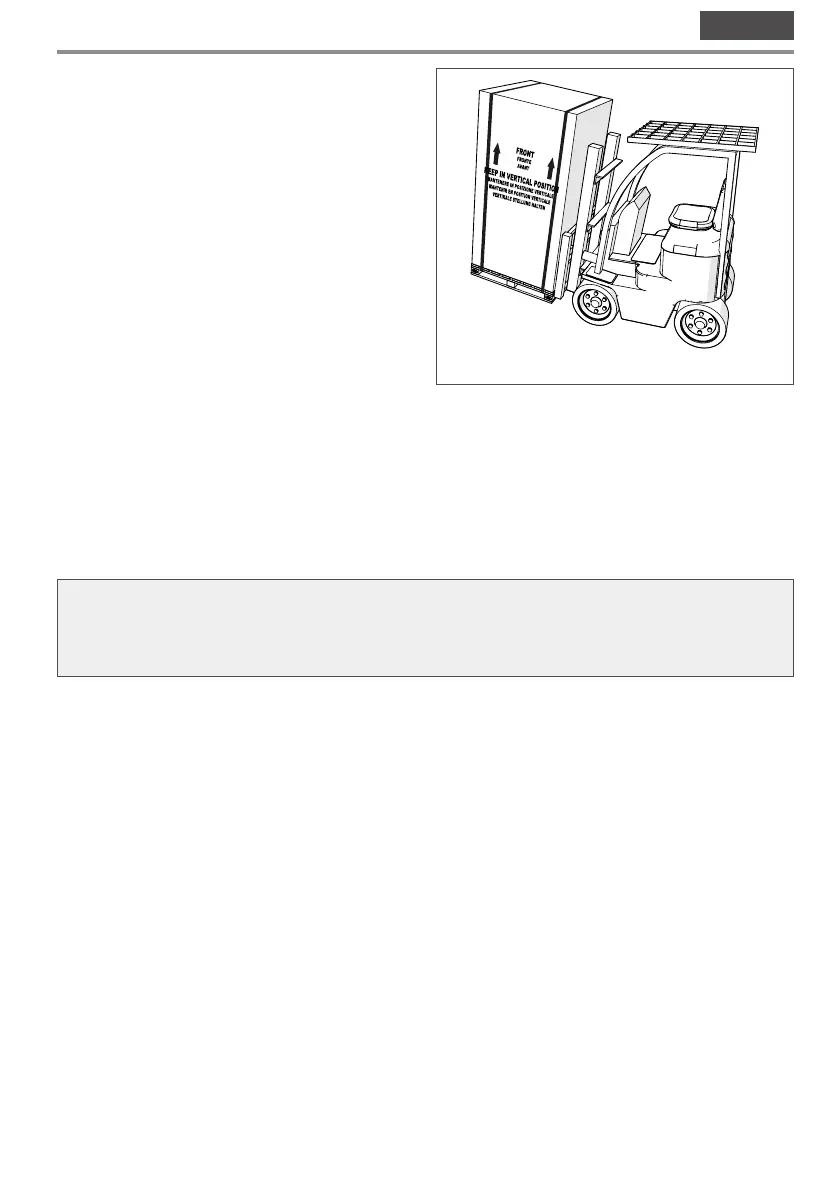 – lift the appliance with the forklift and remove the pallet underneath paying attention to carry out the manoeuvre