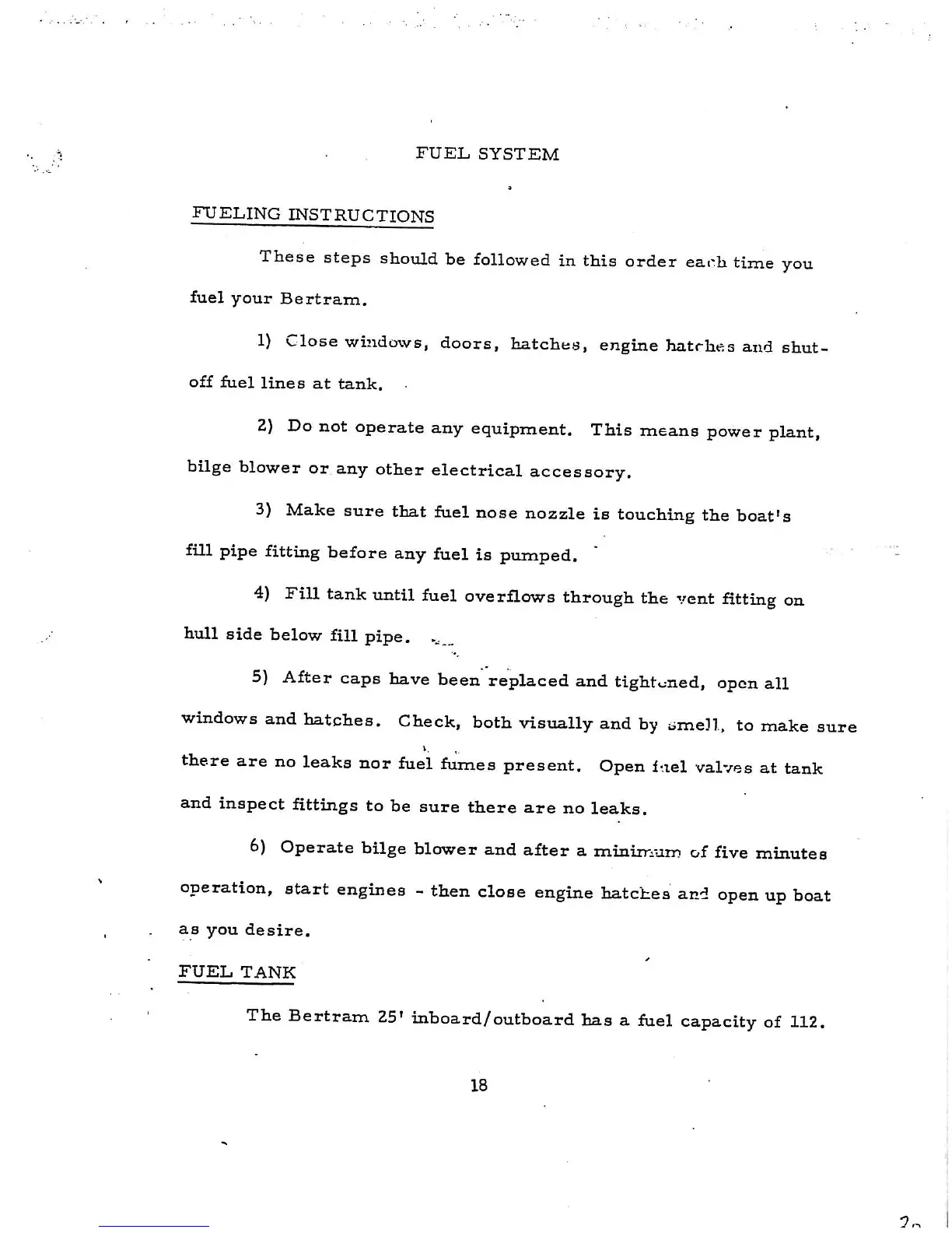 Bertram 25 - Fuel System; Safe Fueling Procedures