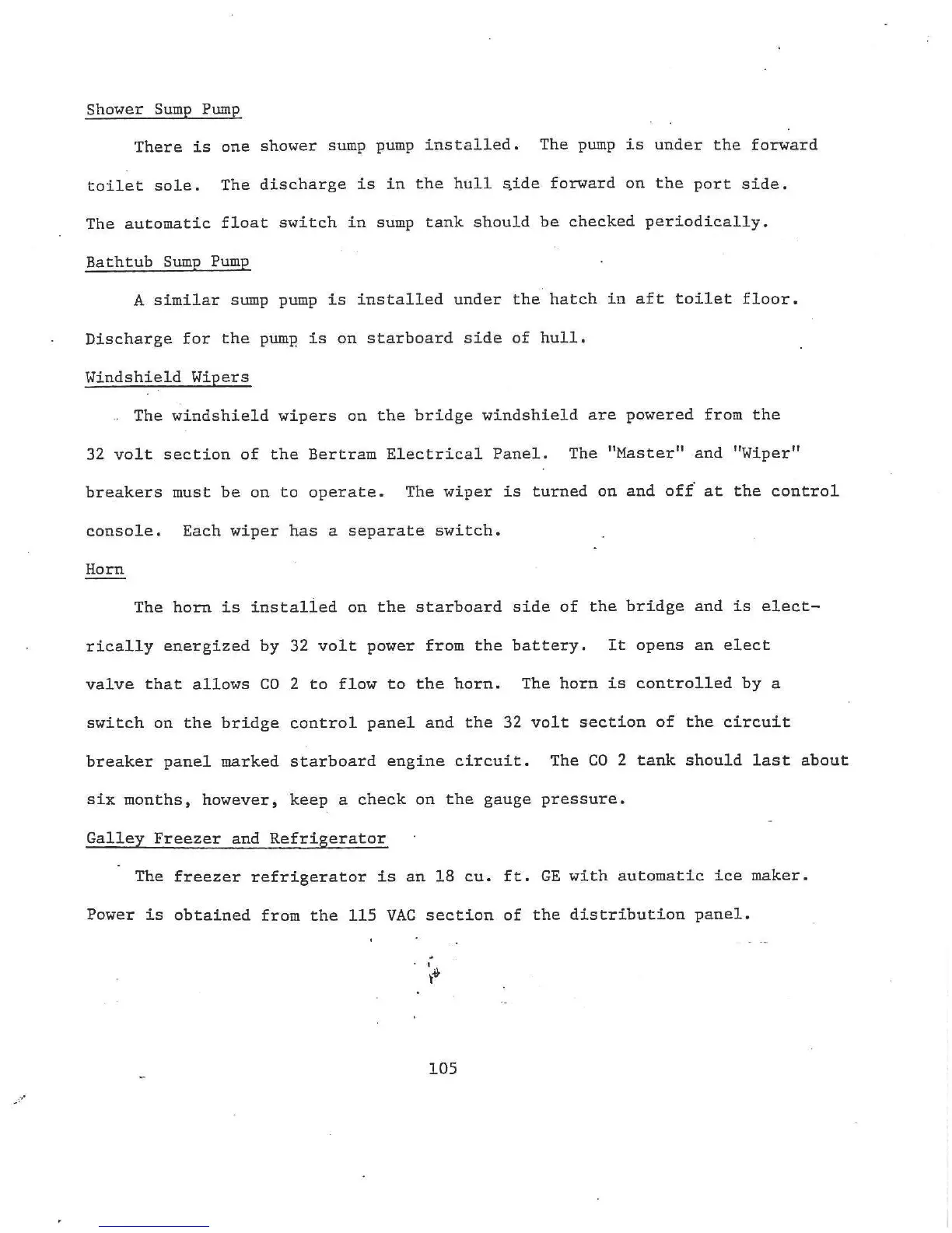 Bertram 46 - Shower Sump Pump; Bathtub Sump Pump; Windshield Wipers; Horn
