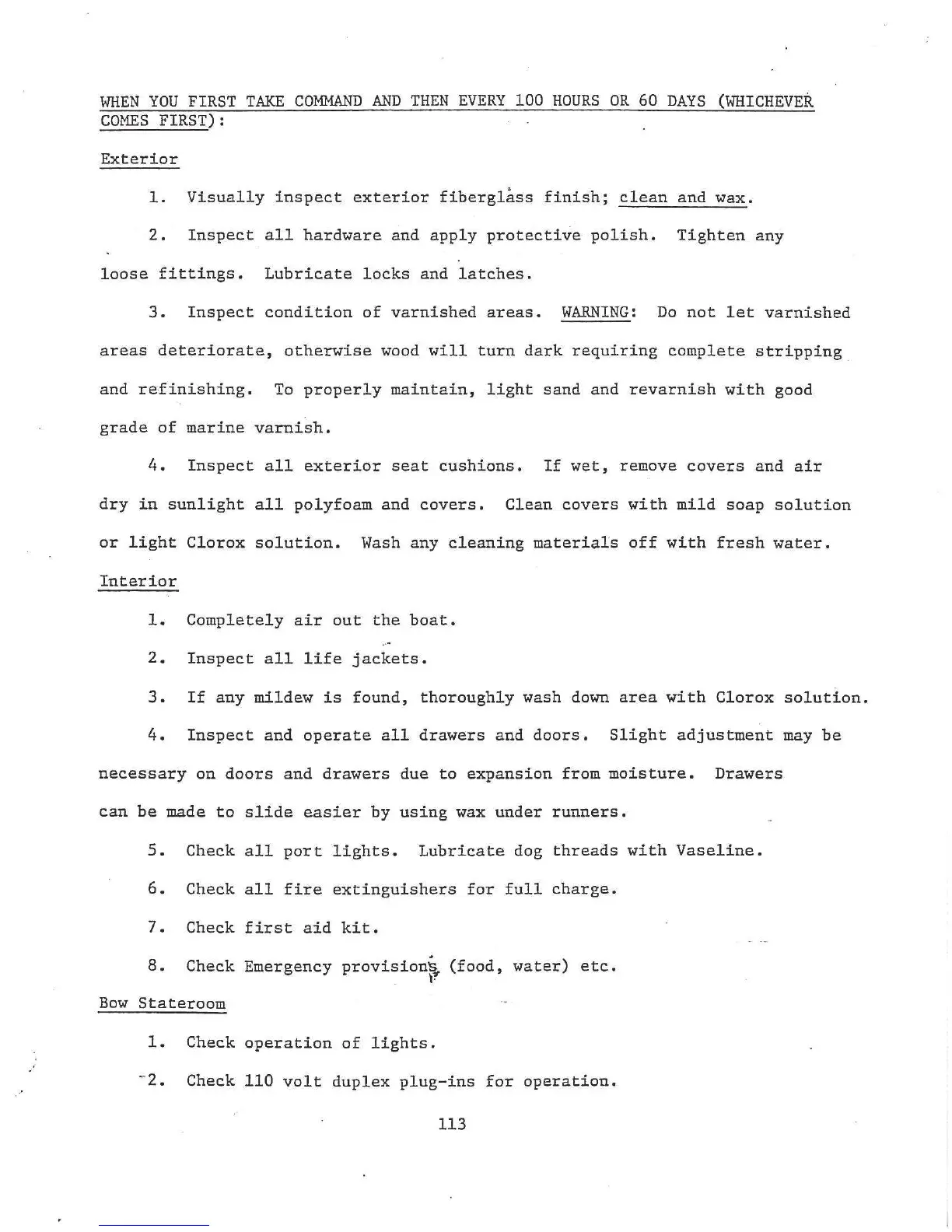 Bertram 46 - Initial and 100-Hour Maintenance; Exterior and Interior Upkeep; Engine Compartment Maintenance
