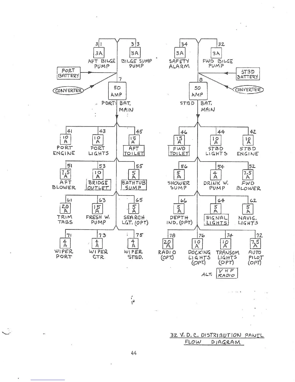 Bertram 46 - 32 V.D.C. Distribution Panel Flow Diagram