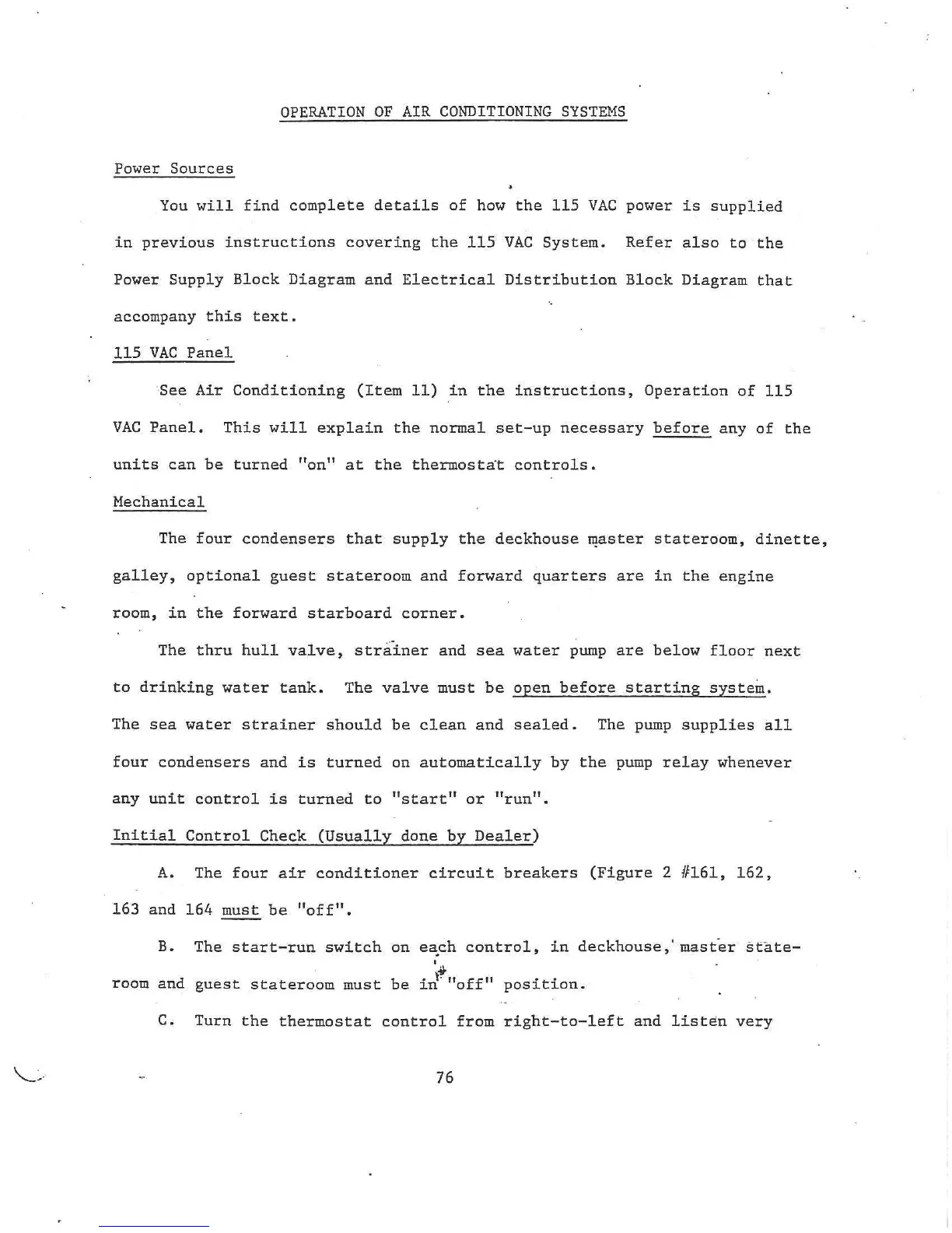 Bertram 46 - Air Conditioning System Operation; AC Initial Checks and Start-Up