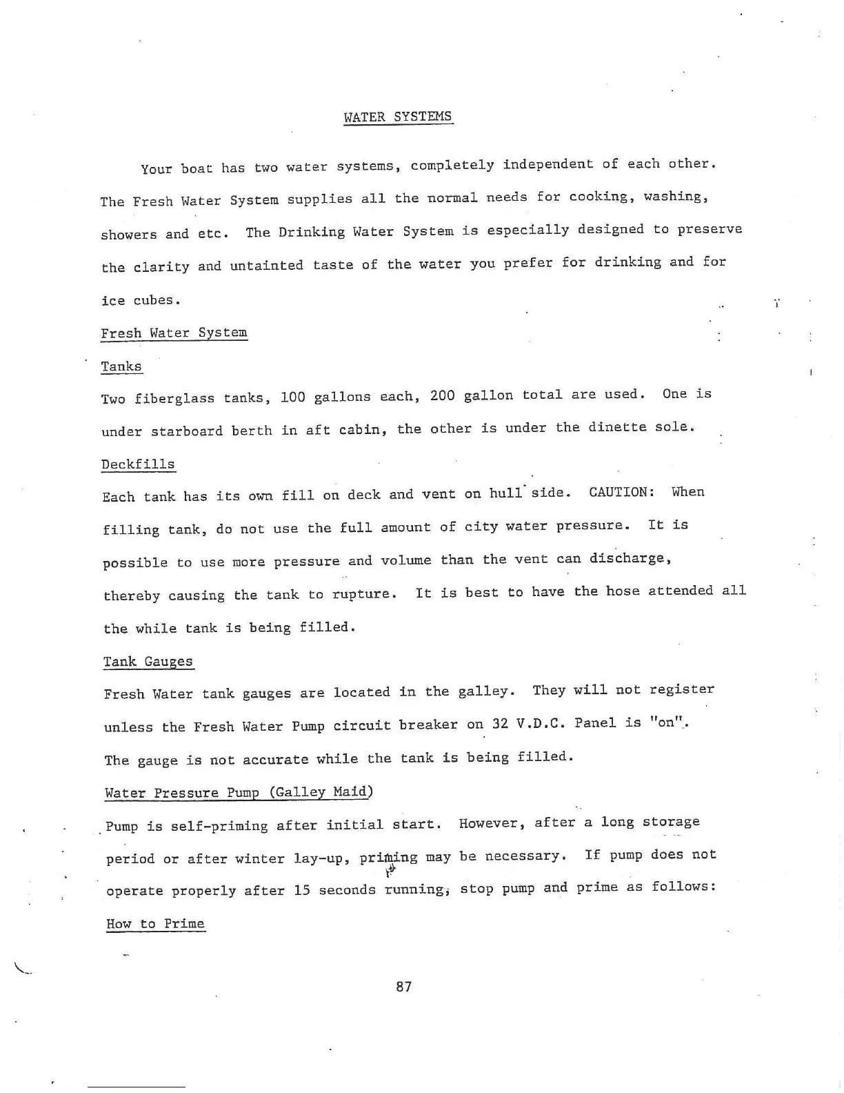 Bertram 46 - Water Systems Operation; Fresh Water System Overview