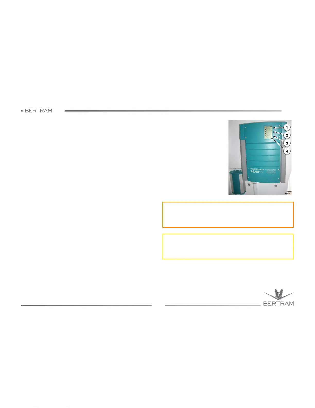 On board of your BERTRAM 540 are located two battery chargers, fully