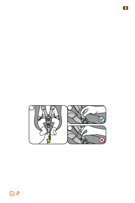 7. Trageți cureaua de reglare centrală din scaun pentru a strânge centura.