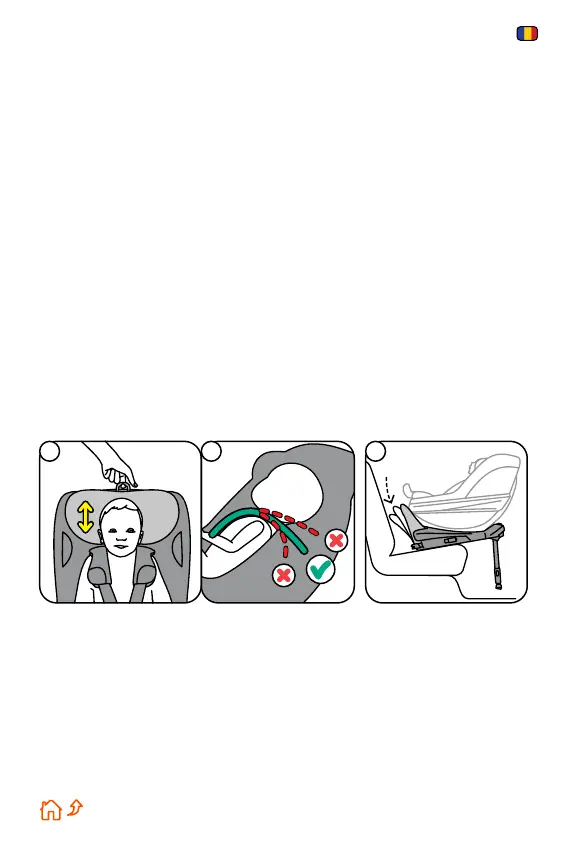 1. Înălțimea centurilor de umăr și a tetierei poate fi reglată trăgând în sus