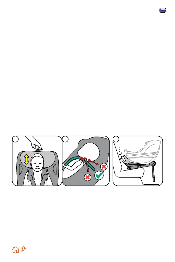 1. Višino ramenskega pasu in vzglavnika lahko nastavite tako, da ročico za