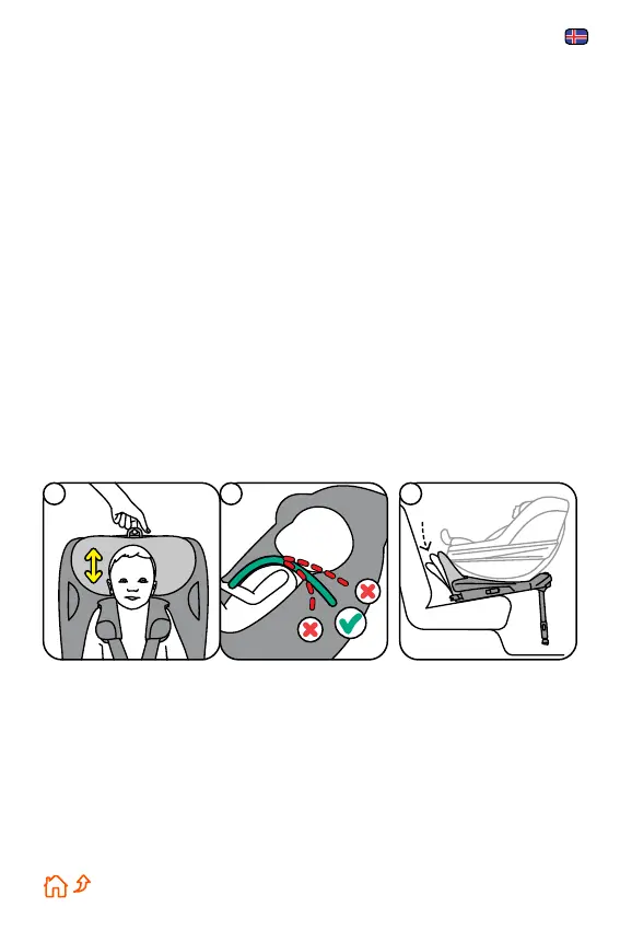 setja barnið í bílstólinn og færa síðan höfuðpúðann niður þar til hann