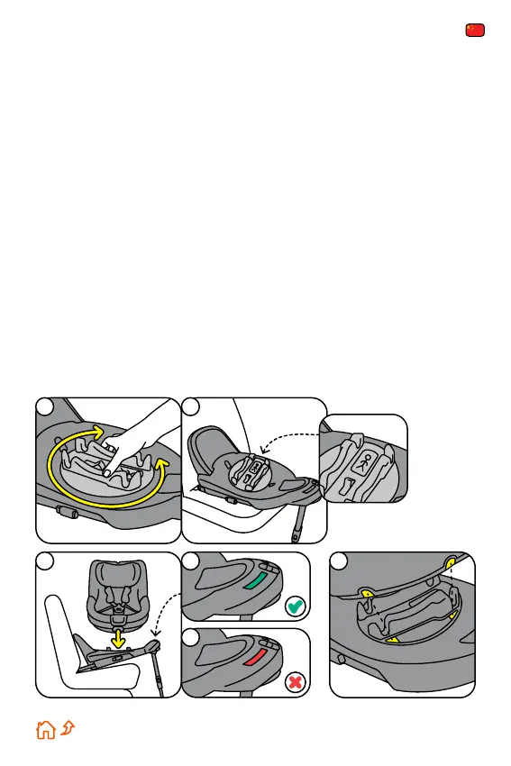 4. 将安全座椅正确放置在基座上直到卡入基座,并且前面的座椅连接显示