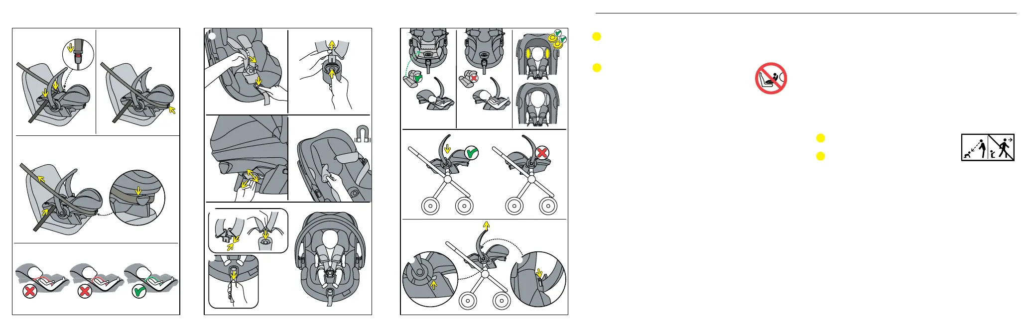 • The harness straps must always be locked when the child is in