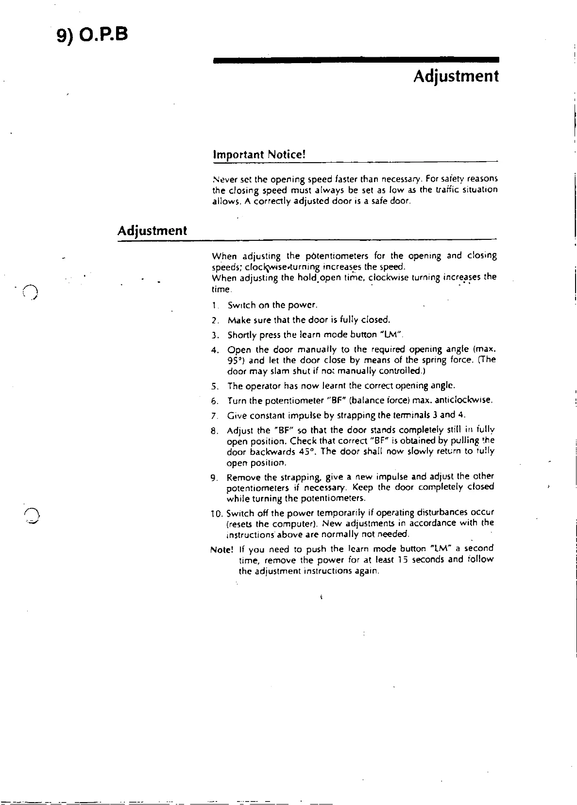~.ver set the opening speed faster Ihan necessary.Forsafetyreasons