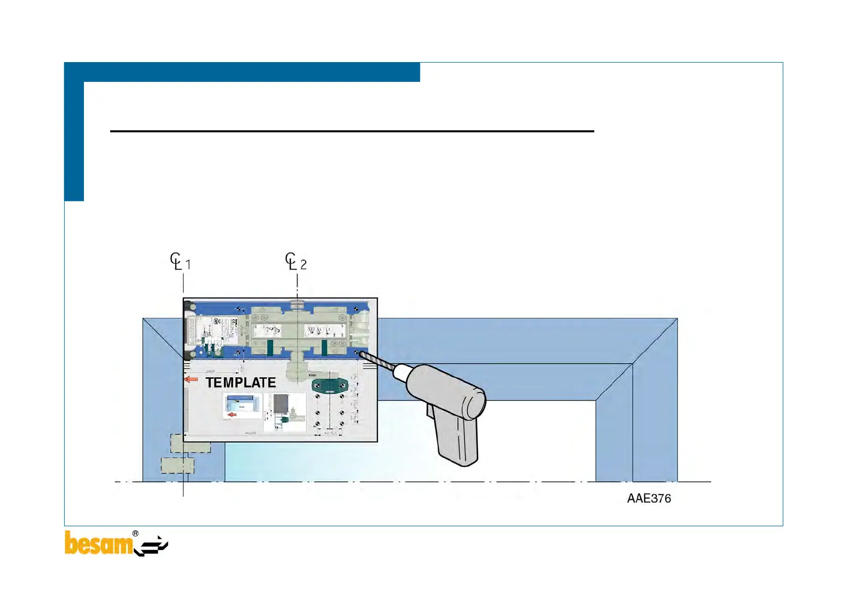 1. Drill the four mounting holes and the two holes for the door fitting.