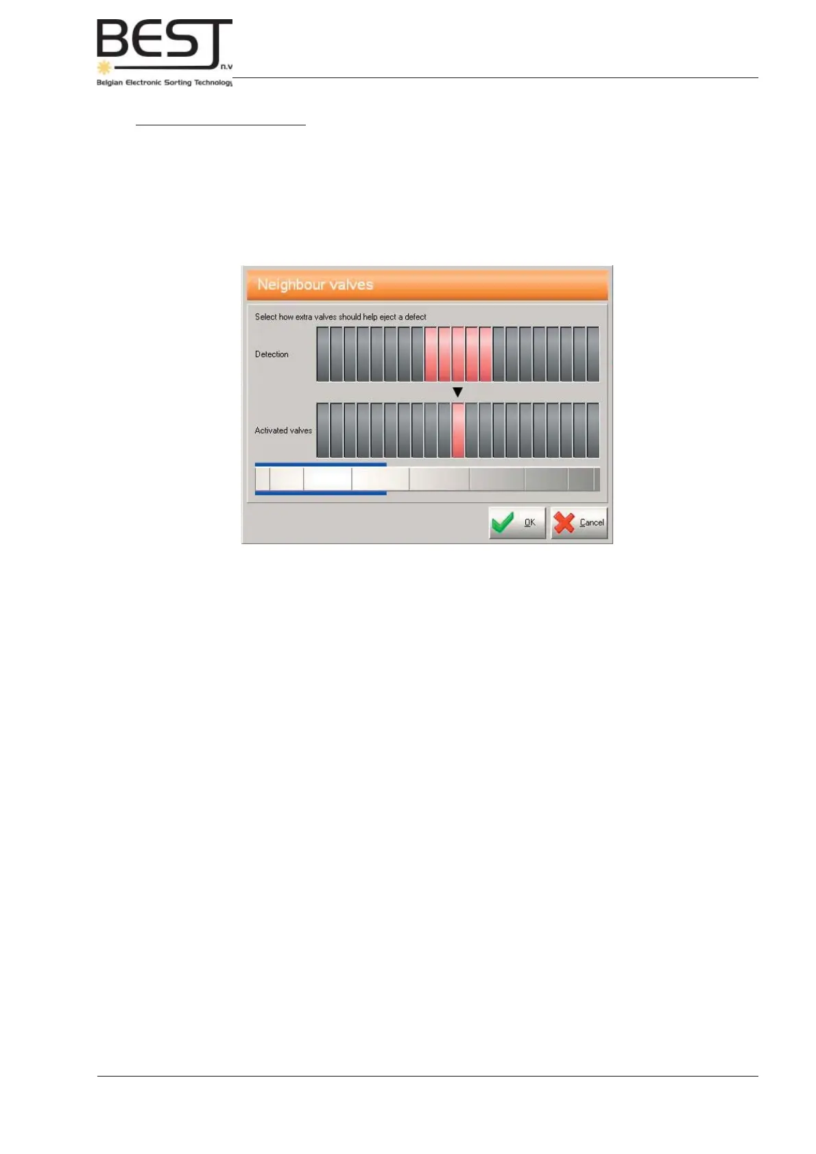 The value - 2 means that two less air gun valves at both sides of the detected defect will fi re, with a