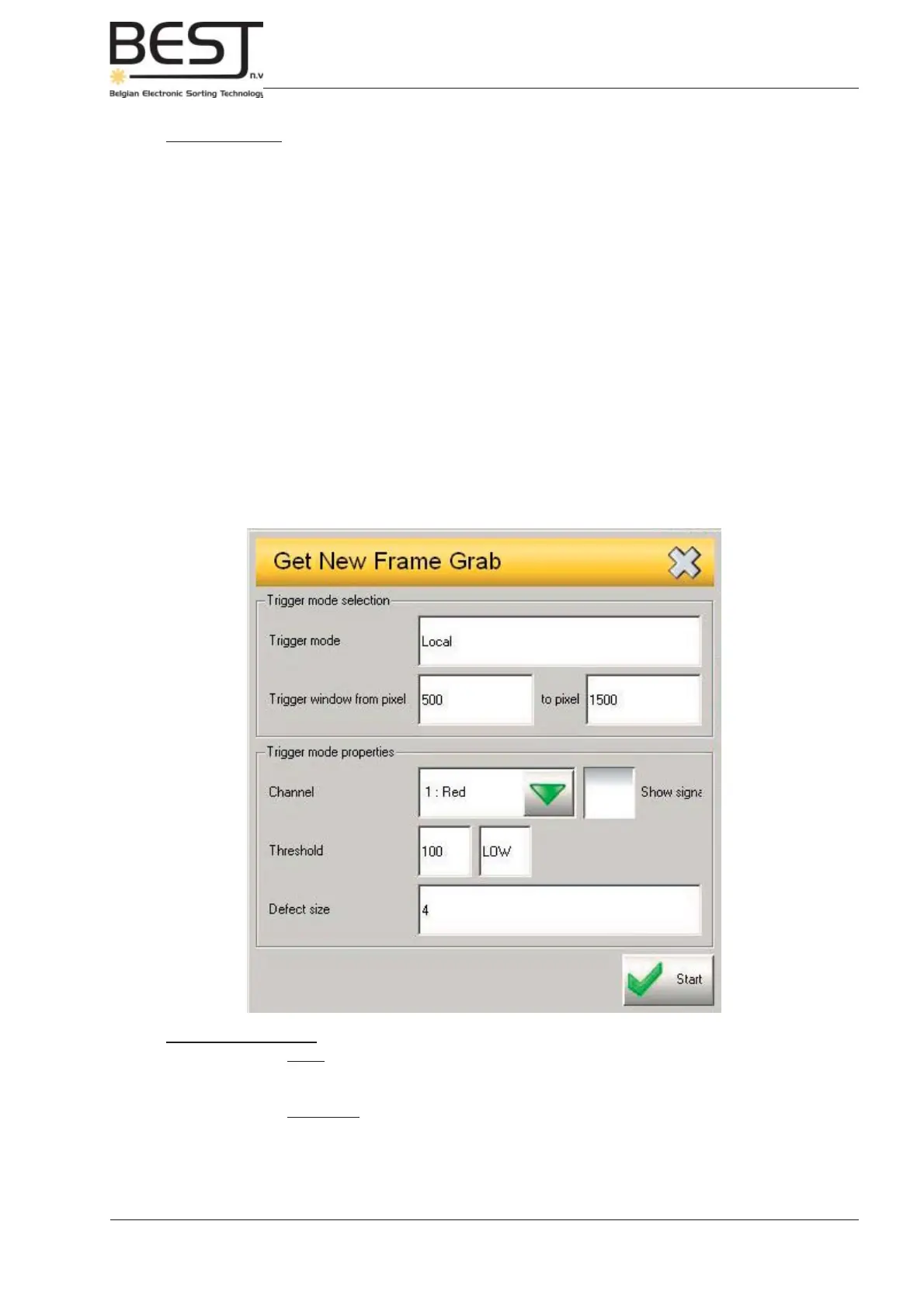 Trigger mode: - Local: means that the frame grab will be taken when the frame grab is triggered (in