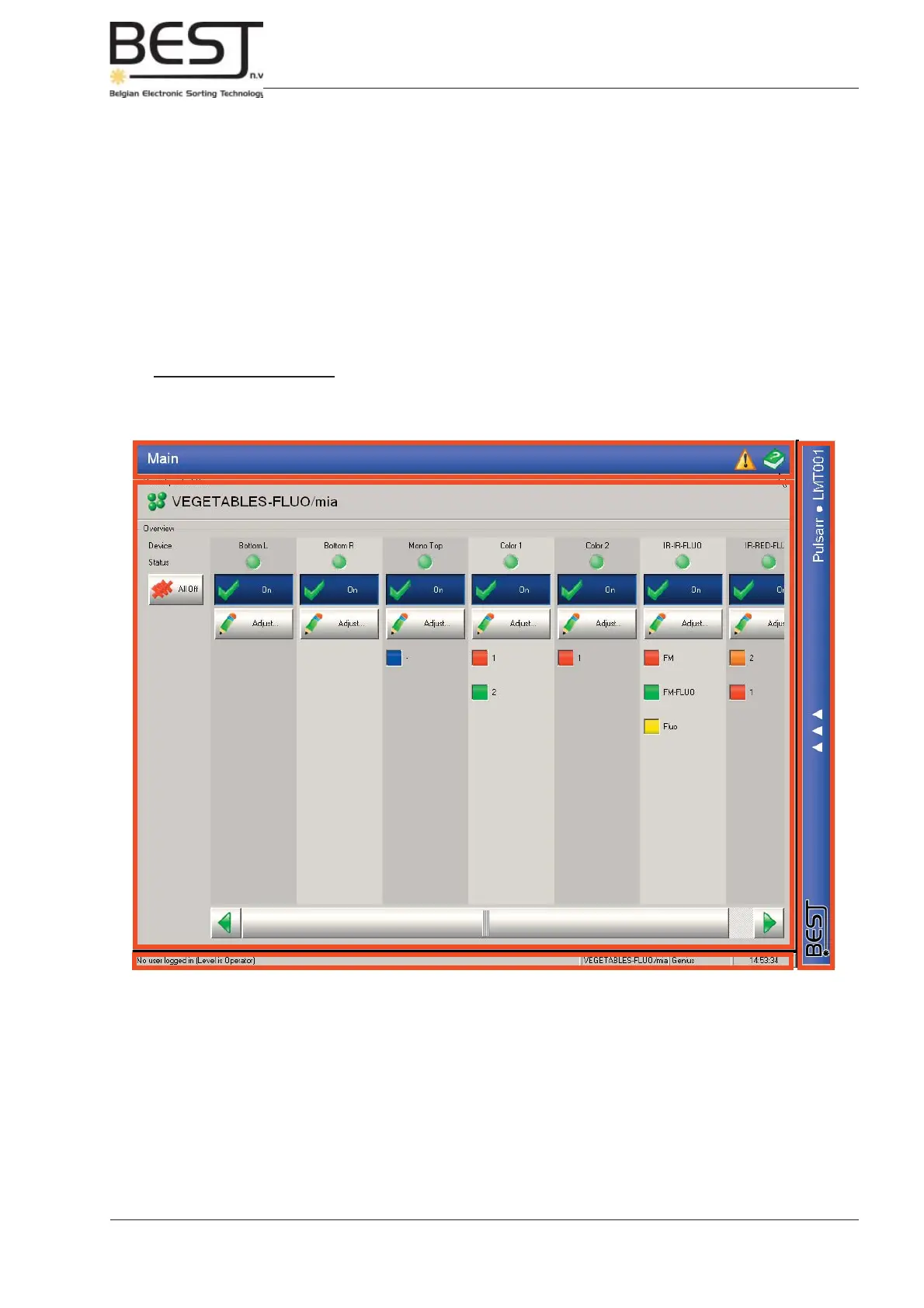 By means of the POLLUX touchscreen program all necessary commands to the sorter unit, concerning