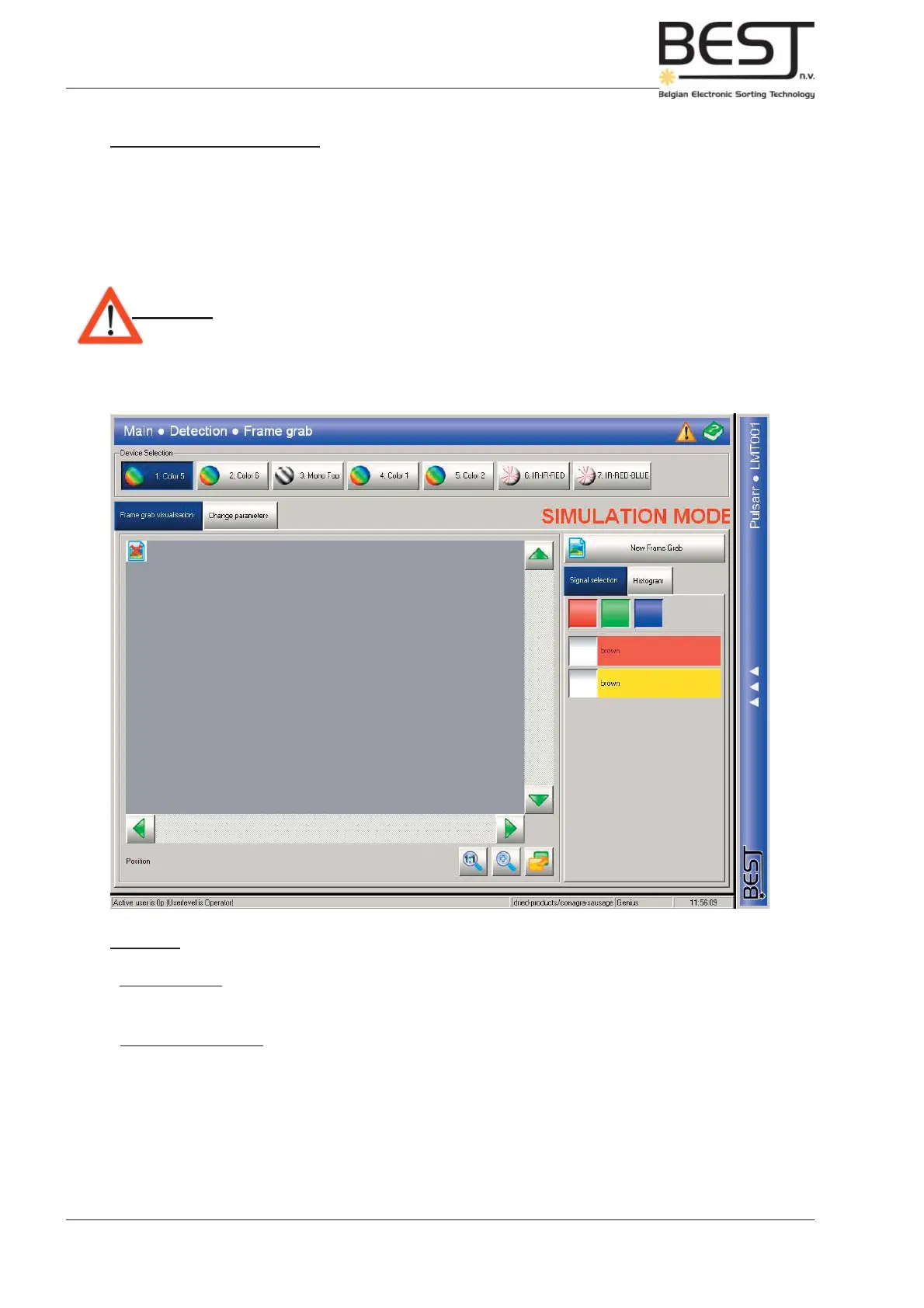 Frame Grab Visualisation: This submenu contains all functions and options having to do