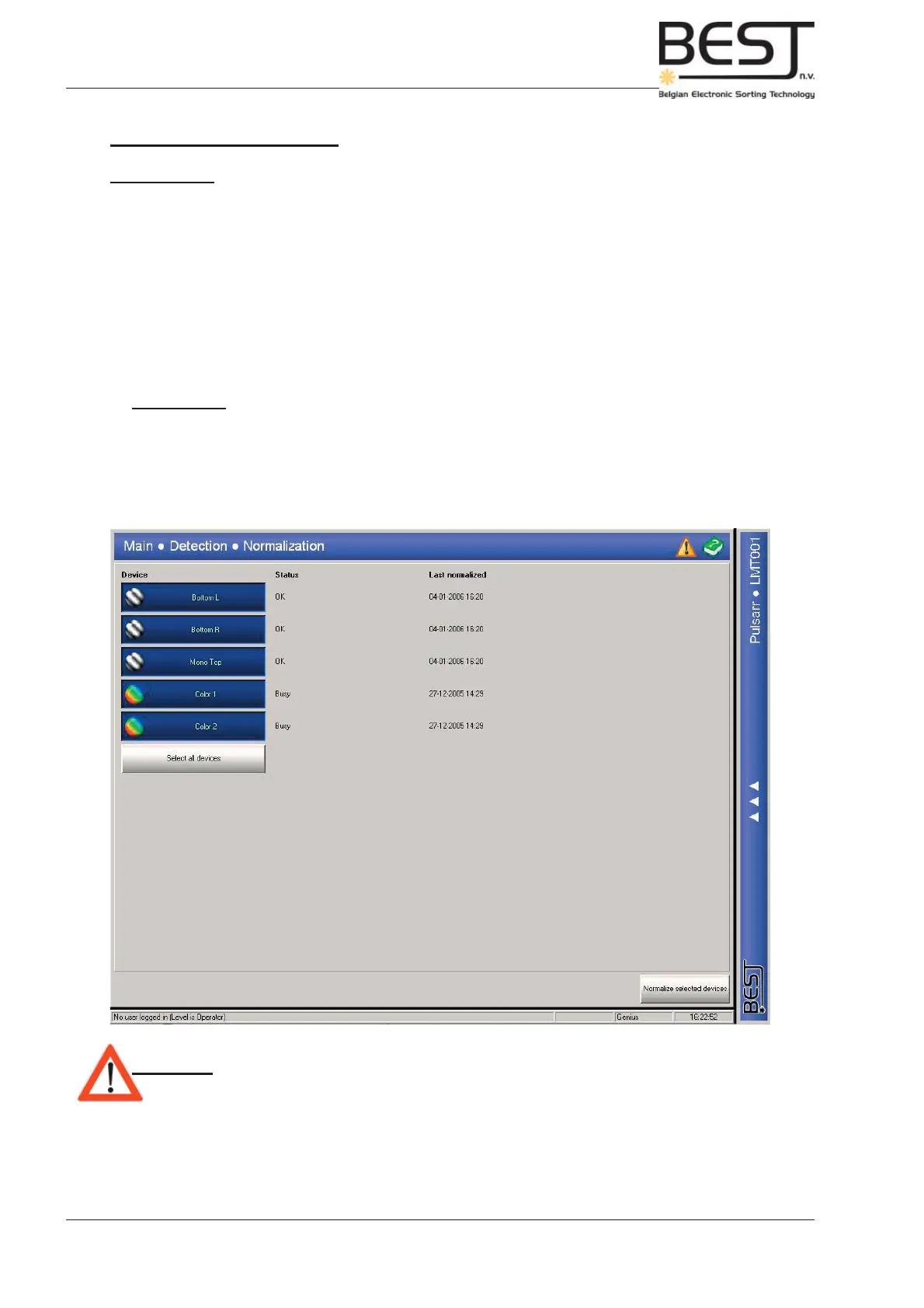 - 1 button for every device: With these buttons the devices to be normalised can be selected.
