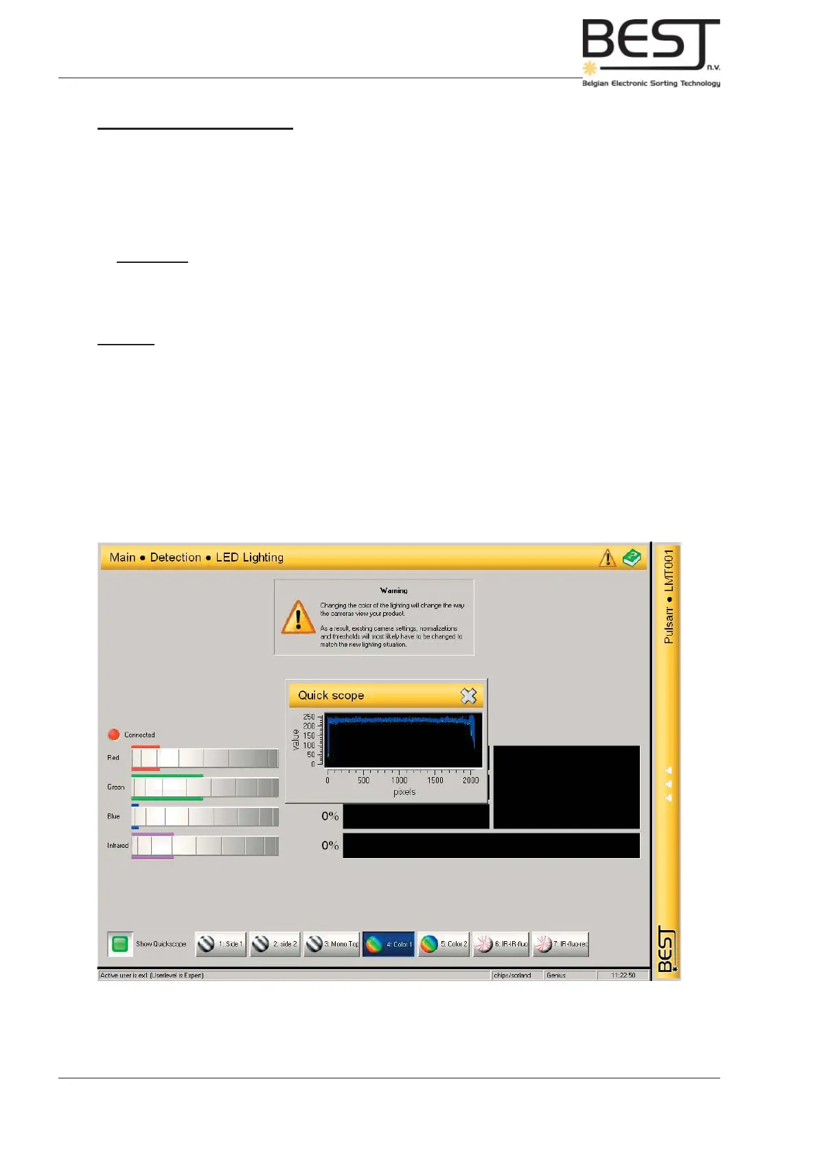 This menu contains all options and functions to set the LED lighting (only active if LED lighting option is