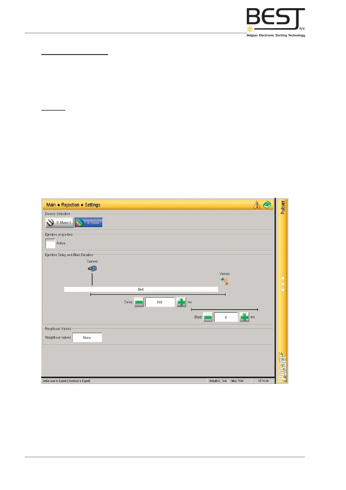 The (Ejection) Delay is the time the product needs to go from the scan zone of the Device