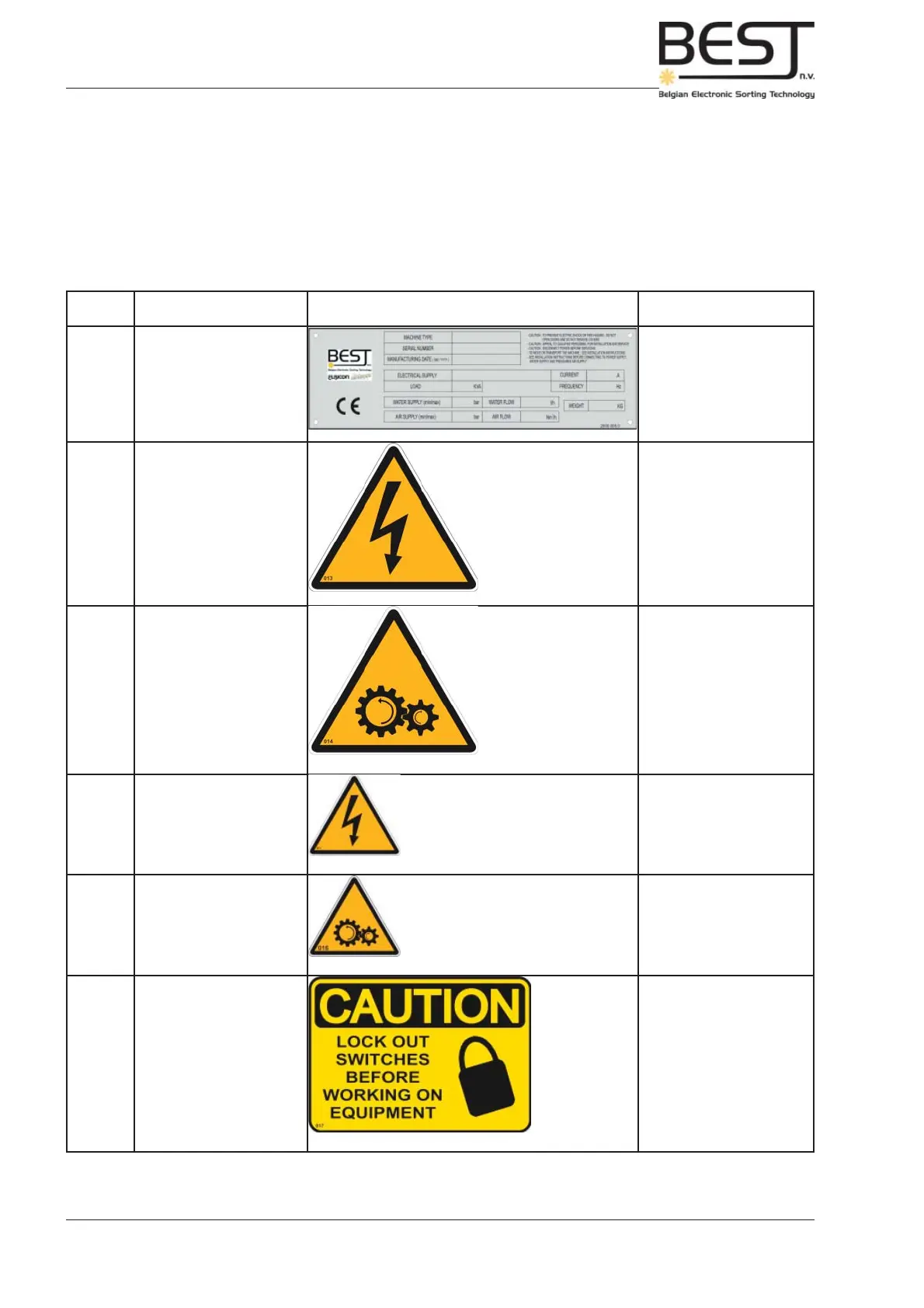 Below you will fi nd a list with pictures of all safety labels located on the GENIUS Compact installation.