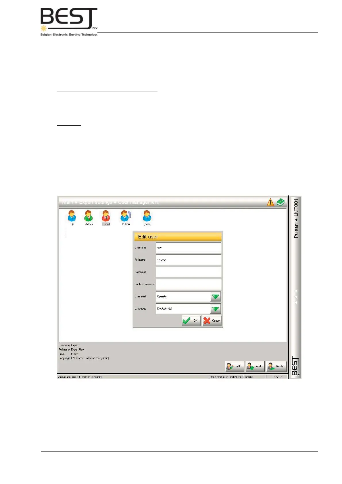the lower edge of the screen. This level is only intended for BESTnv service engineers.