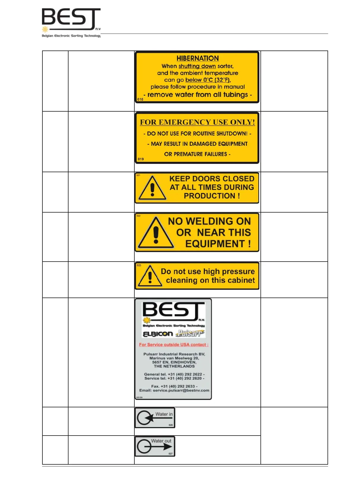 General tel. +31 (40) 292 2622 - Service tel. +31 (40) 292 2620 - Fax. +31 (40) 292 2633 - Email: service.BESTnv@bestnv.com