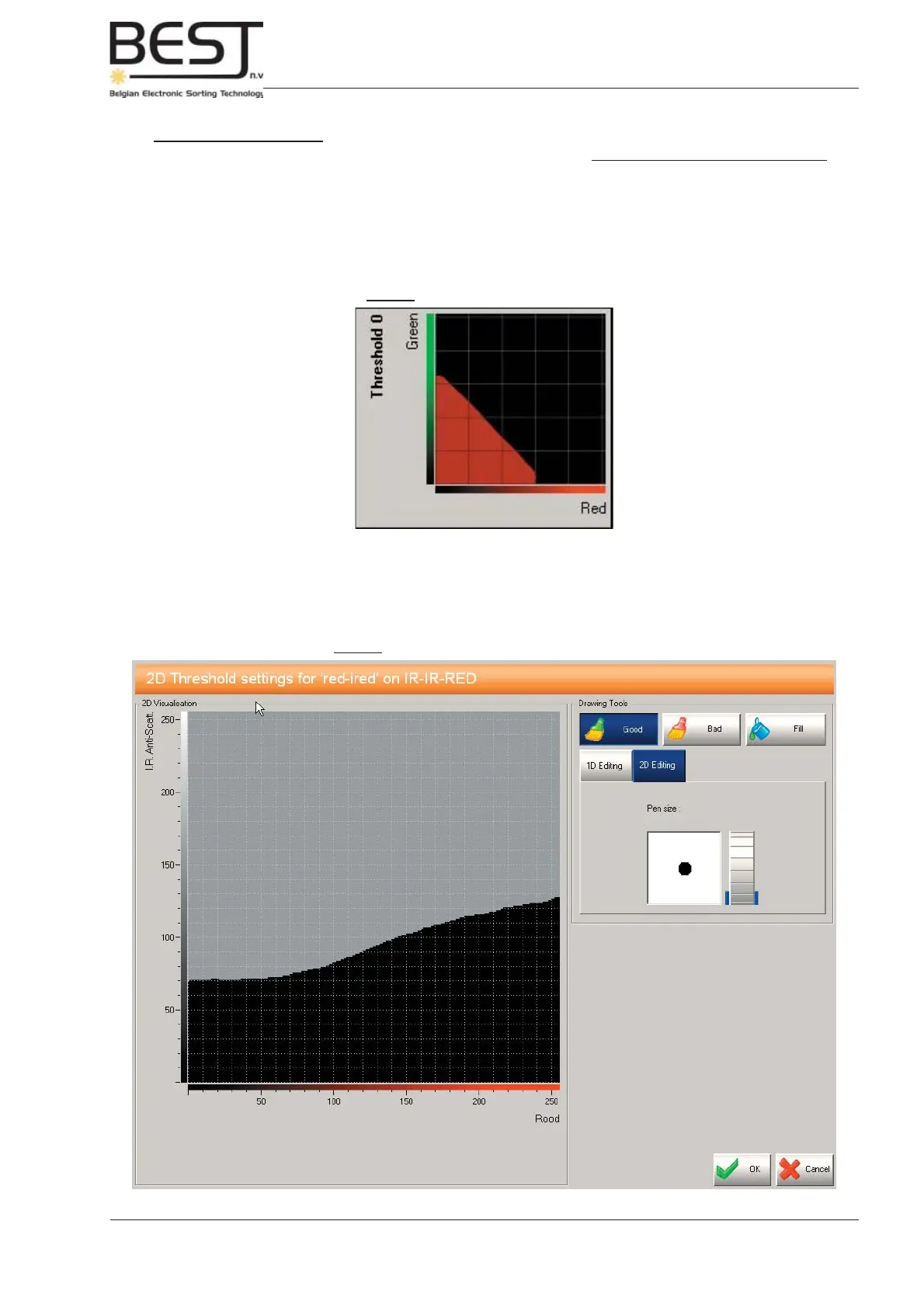 Combined thresholds are formed by combining two signals of a colour camera or two laser signals.