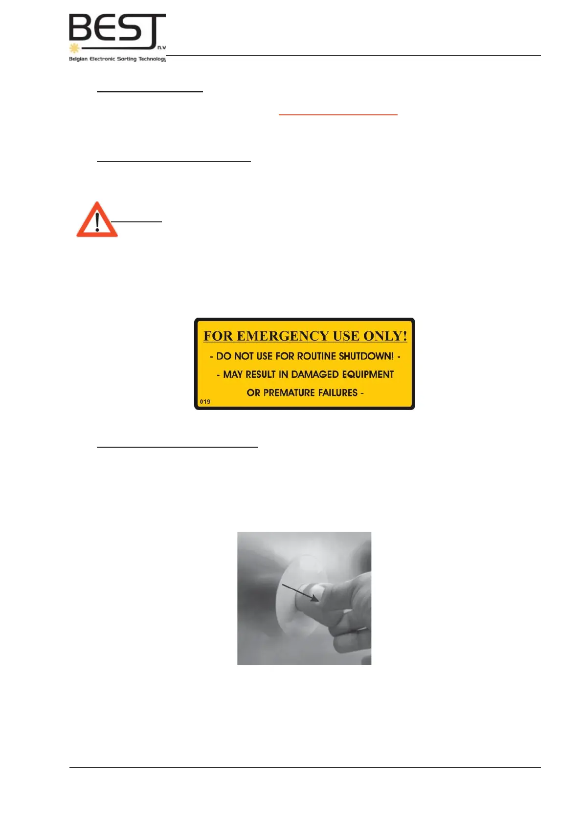 the optics, all moving parts and all equipment directly controlled by the sorter will be cut immediately!