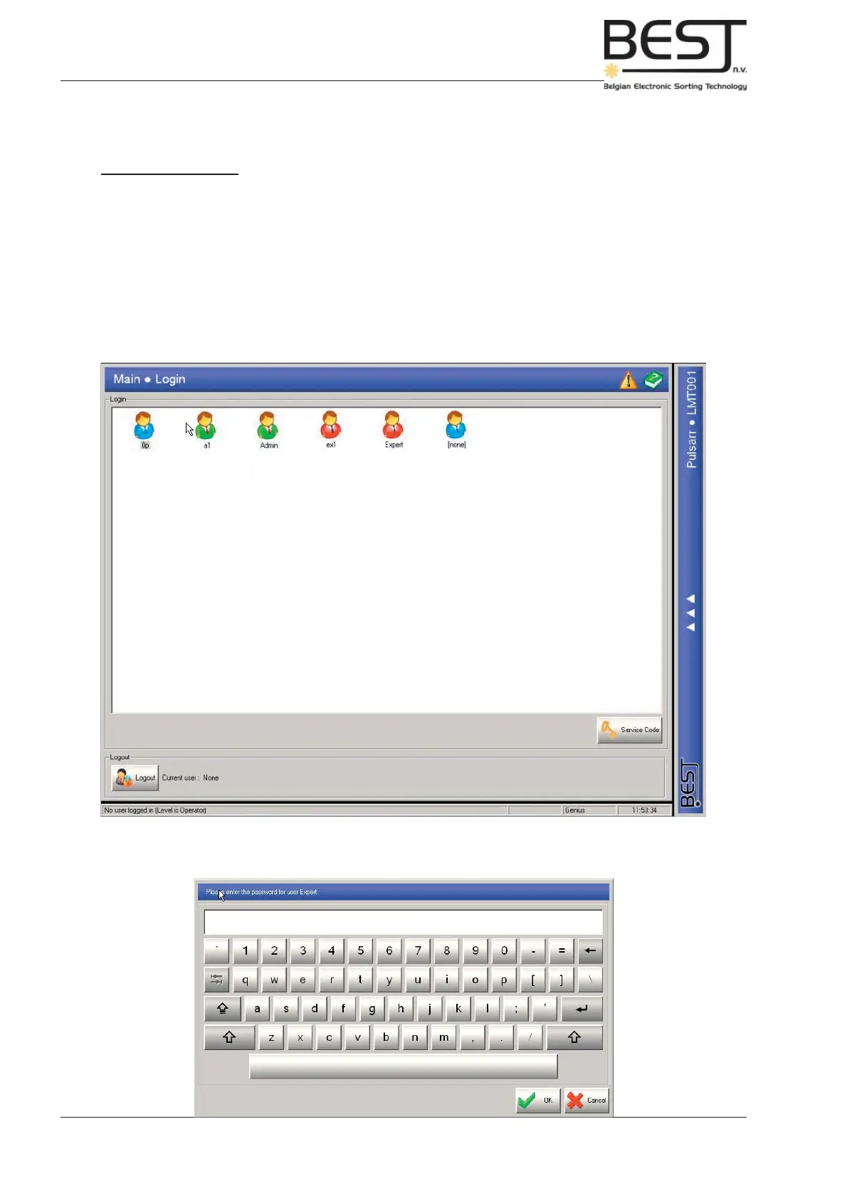 Select the appropriate user by pressing the appropriate icon. Use the pop-up keyboard (see next picture)