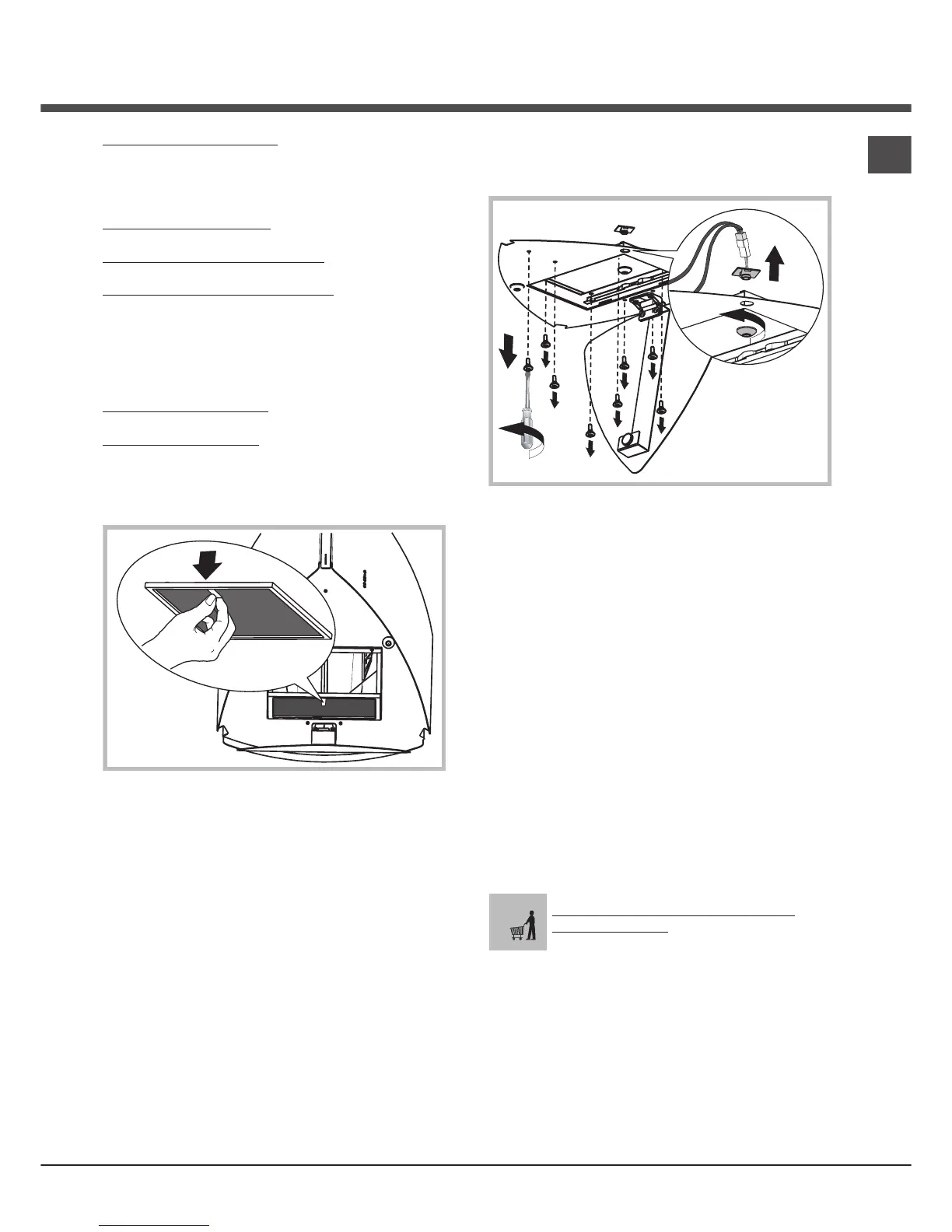 För att koppla ur det dra ut spärren och vrid filtret nedåt.