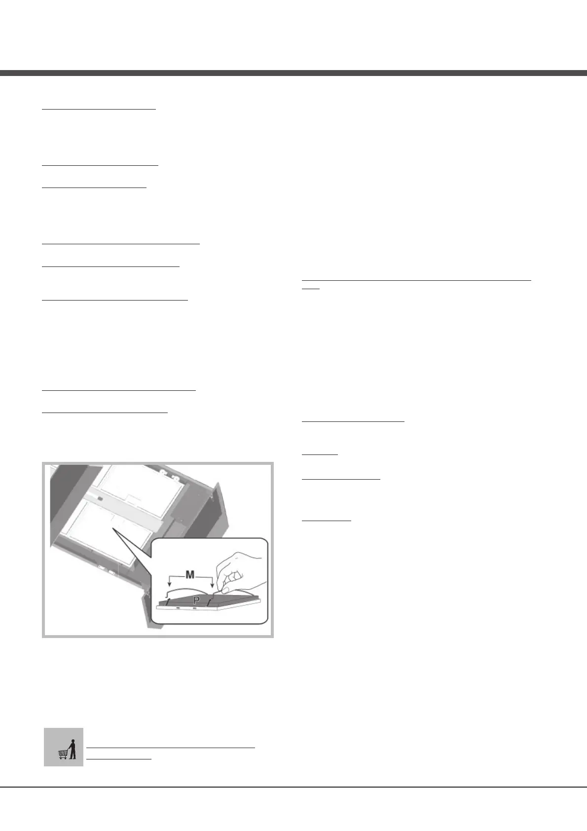 emhætten, og de 2 filterholdere (M) indsættes for at