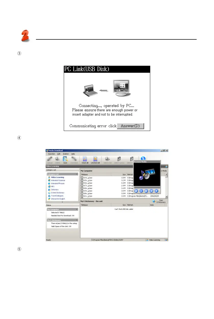 After the USB cable is connected properly, the screen appears as bellow. (You