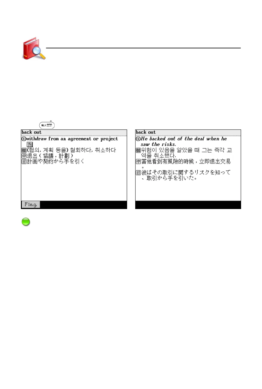 English, Korean, Chinese and Japanese explanations and sample sentences will be