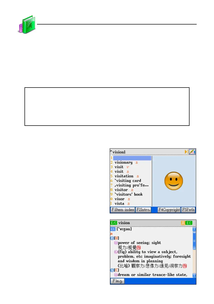 dictionaries. If the device can find what you want to look up in other dictionary, it will display the