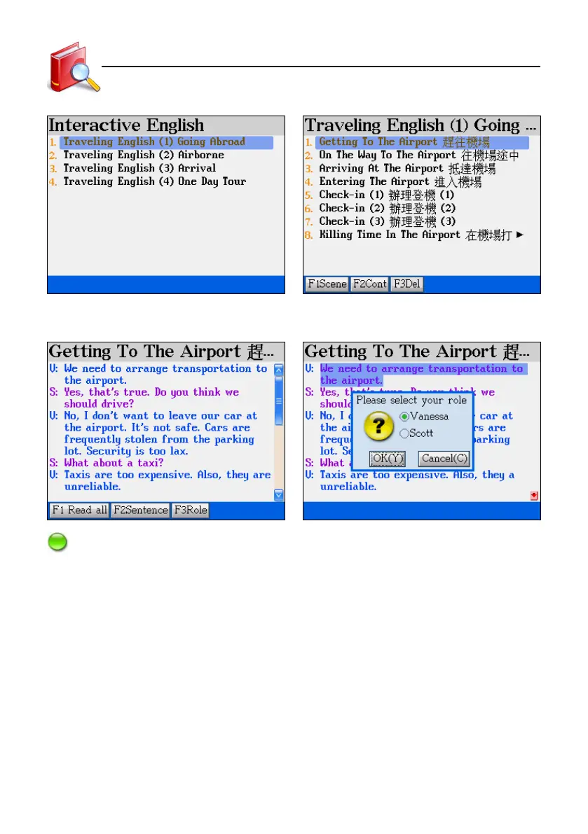 interactive English contains topic dialogue and play-role to learn conversation skill, useful vocabulary and sentence.