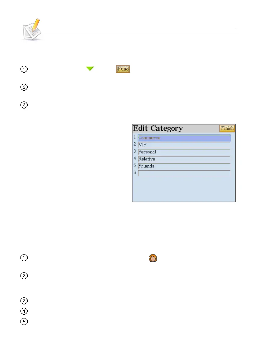 Tap directly or press numeric key to select a category to edit the category name or add a new