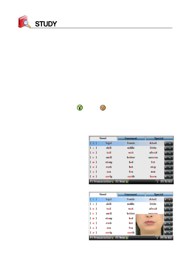 * Tap [F1Pron.] to listen to all the phonetic symbols continuously; tap the