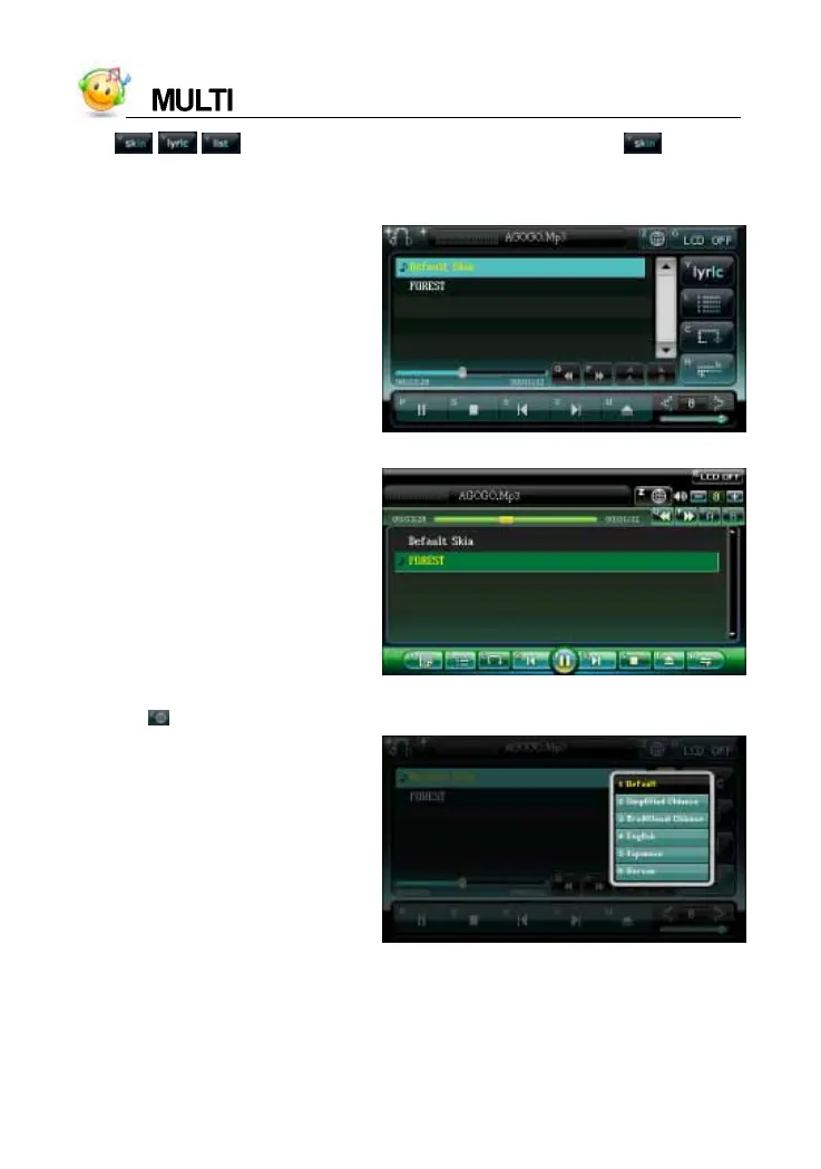 *Tap / / to switch the list of Skin/Lyric/Songs.Tap to select