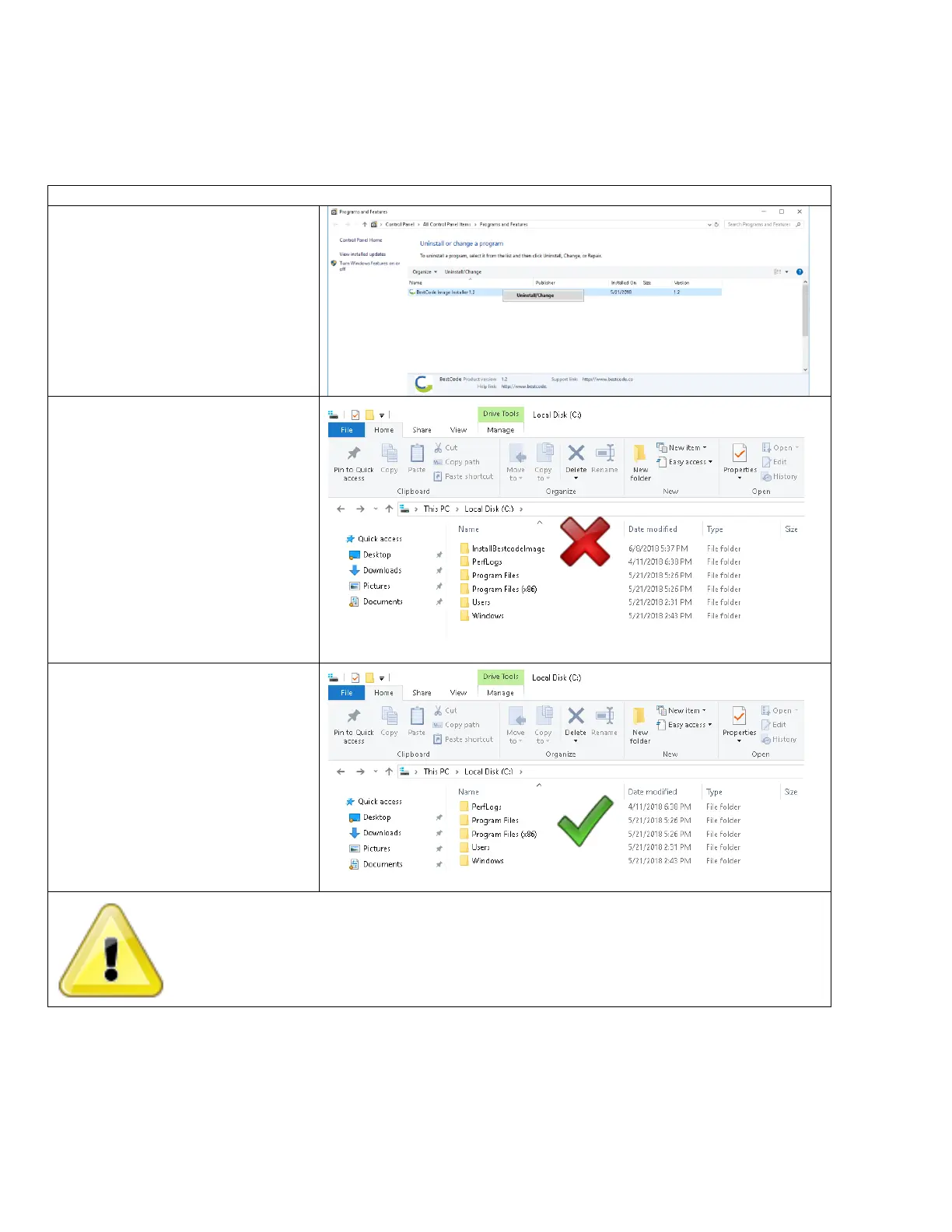 Uninstall the previous BestCode Image Installer
