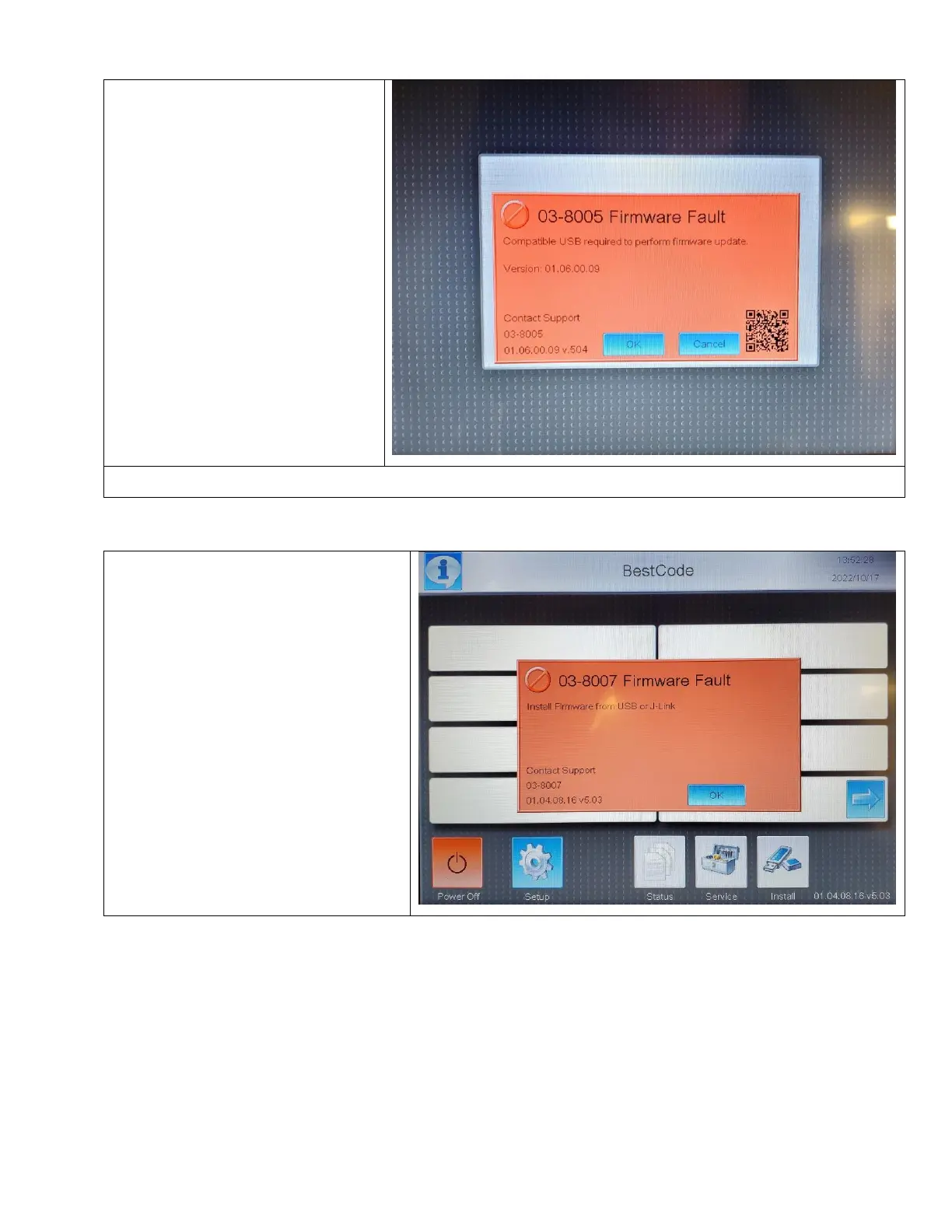 Insert a USB with the Version of Firmware indicated on the Prompt and press OK to recover.
