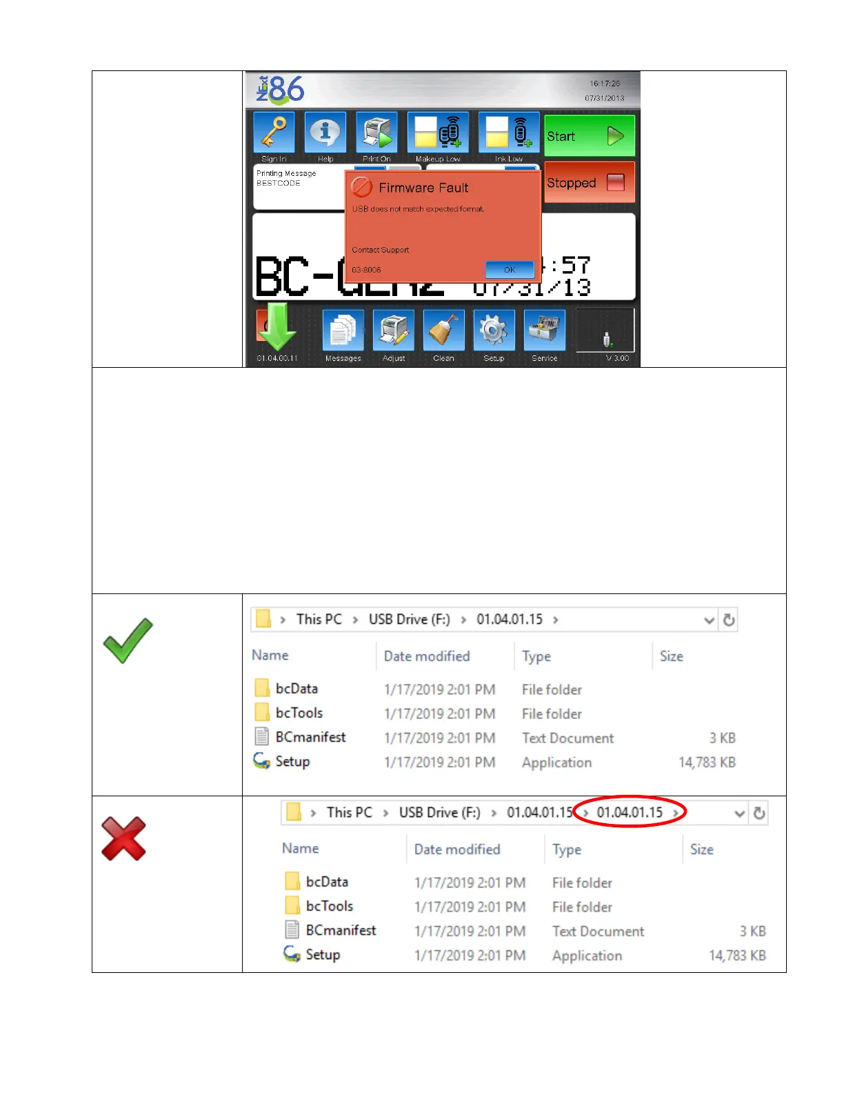 2. Check the format on the USB stick. Make sure the version loaded on the machine matches the version loaded on
