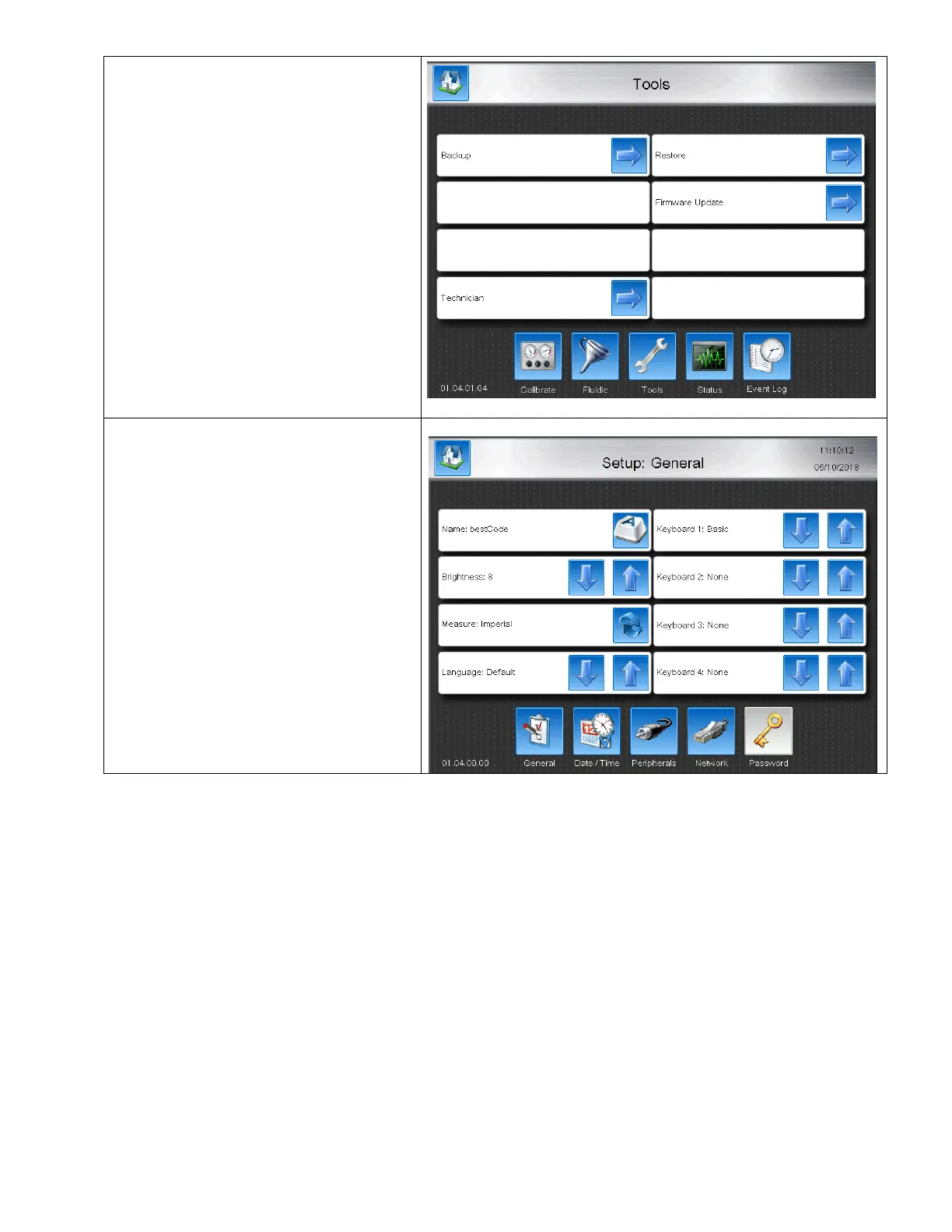 5. Navigate to the Setup screen and use the