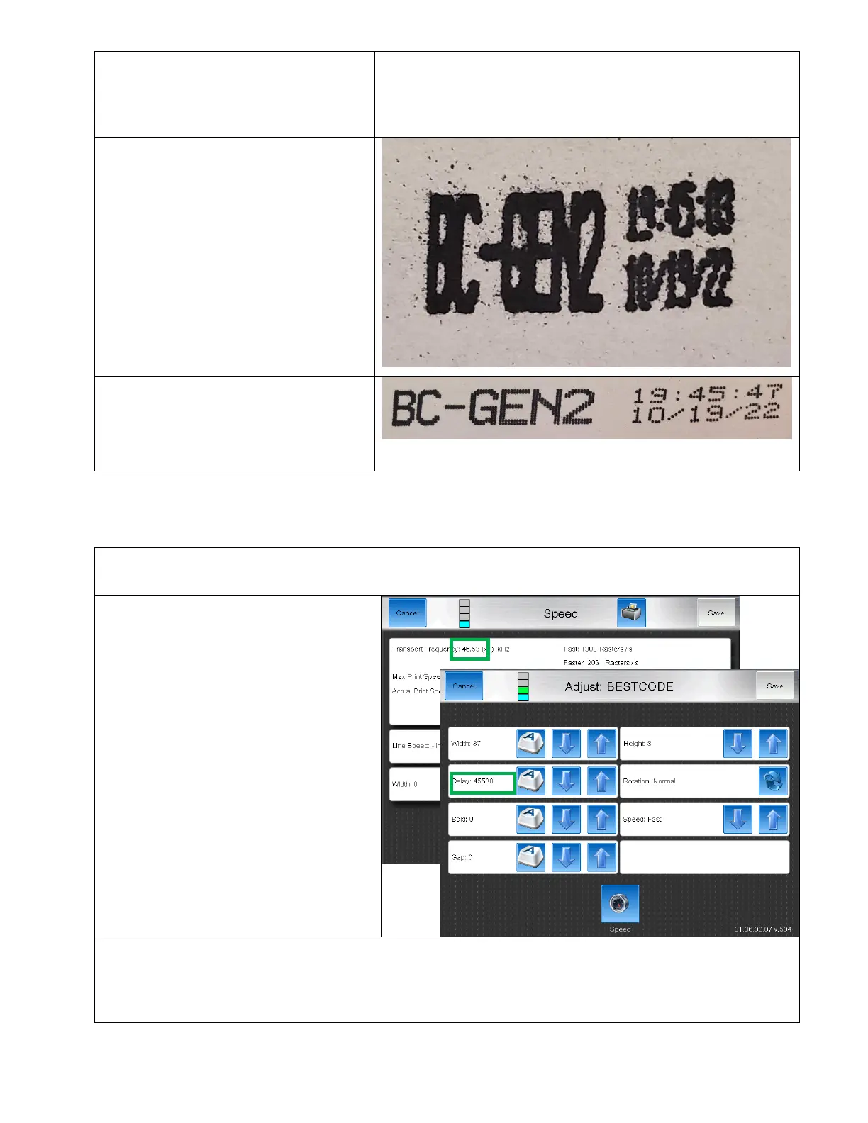 3. For unknown line speed, the Delay or Pitch should be tested, and adjusted until proper print length and spacing