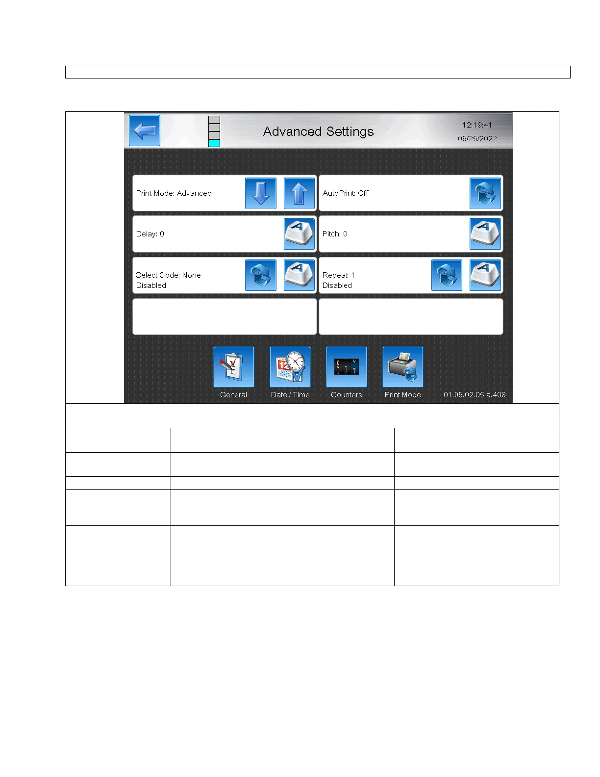 AutoPrinting mode, Repeat or AutoSelect Print Modes. Features can be enabled or disabled independently.
